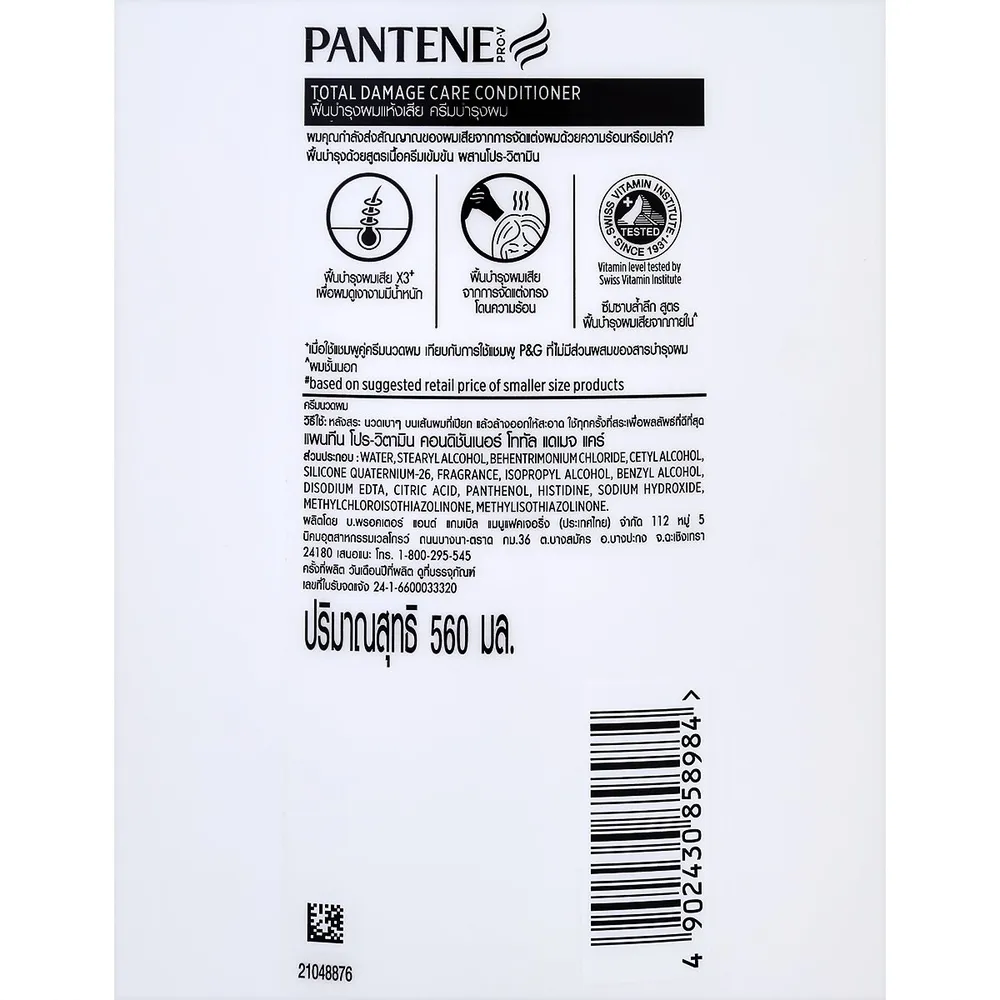 แพนทีน โปร-วี โททัล แดเมจ แคร์ คอนดิชันเนอร์ที่พร้อมเติมเต็มสุขภาพเส้นผมที่เสียให้กลับมาสวย เส้นผมที่เสียหายจะได้รับความชุ่มชื้น พร้อมทั้งปกป้องด้วยการเคลือบผิวเส้นผมชั้นนอกไม่ให้ผมเสียลุกลาม<br />
