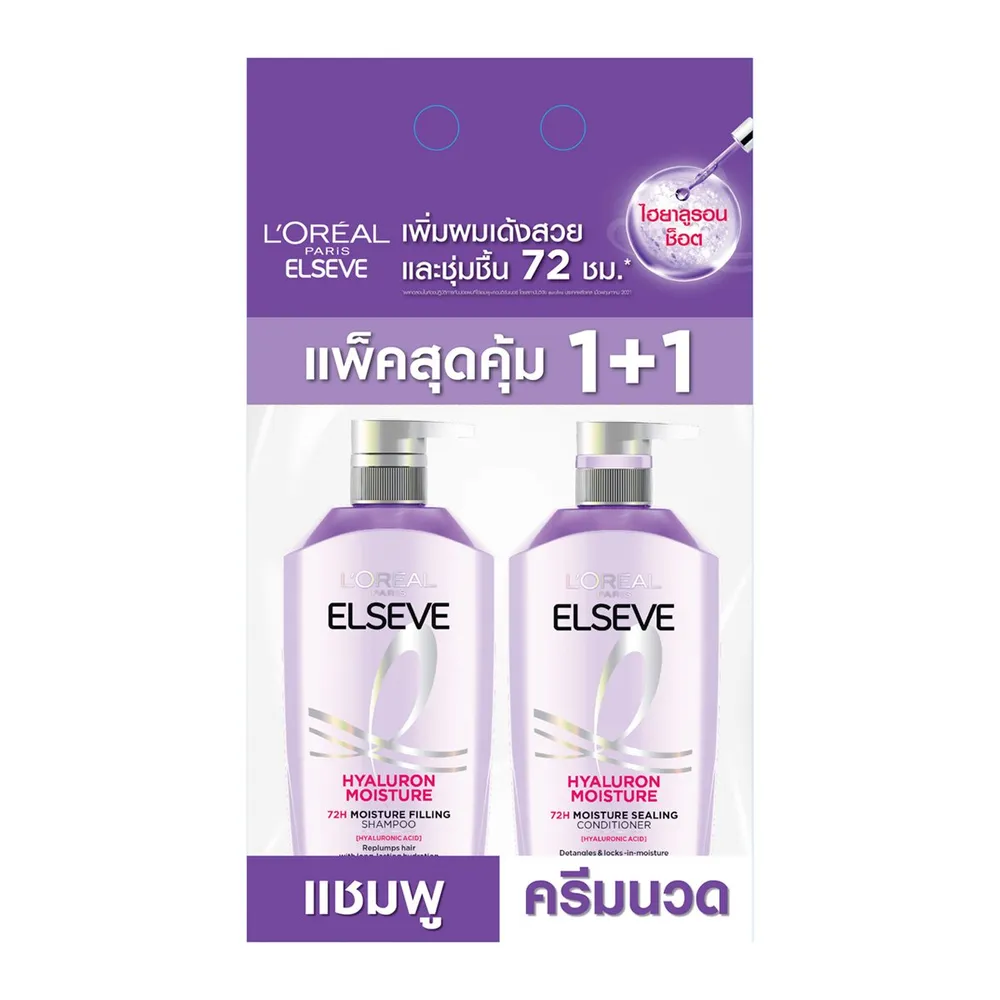 ลอรีอัล ปารีส เอลแซฟ ไฮยาลูรอน มอยซ์เจอร์ 72เอช แชมพู+ครีมนวด 400+375 มล.
