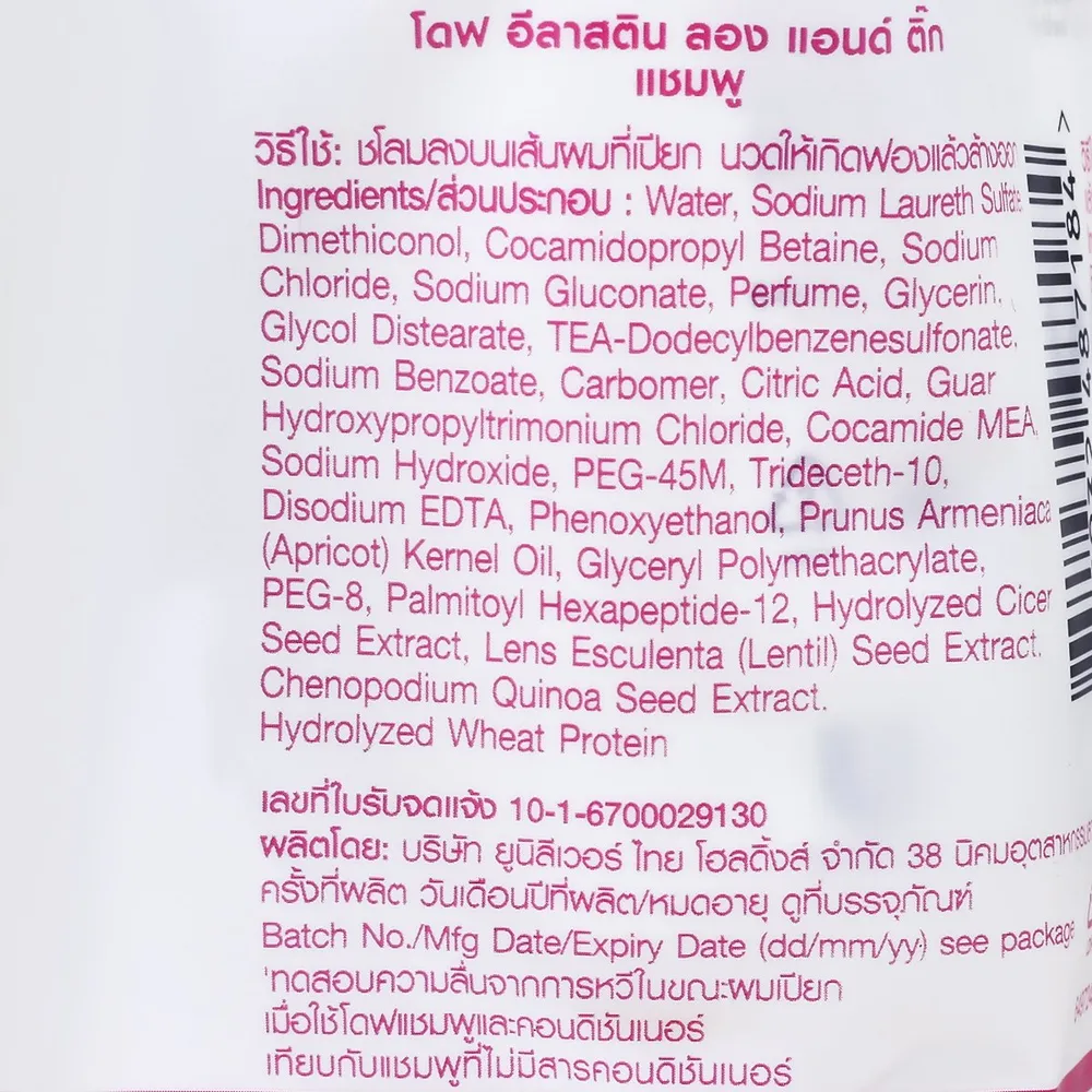 <p>โดฟแชม อีลาสติน ลอง แอนด์ ติ๊ก แชมพูและคอนดิชันเนอร์ 360+330 มล.<br />