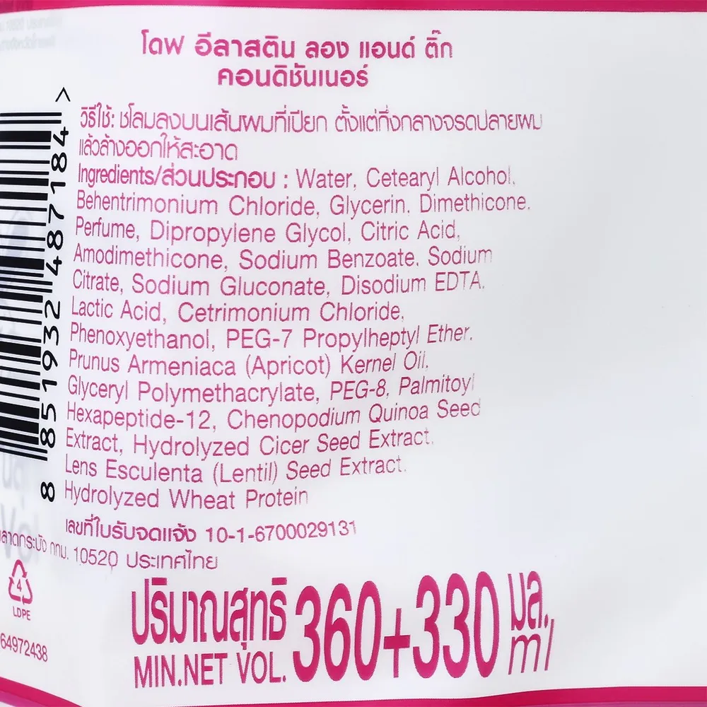 โดฟ อีลาสติน ลอง แอนด์ ติ๊ก แชมพูและคอนดิชันเนอร์ 360+330 มล.