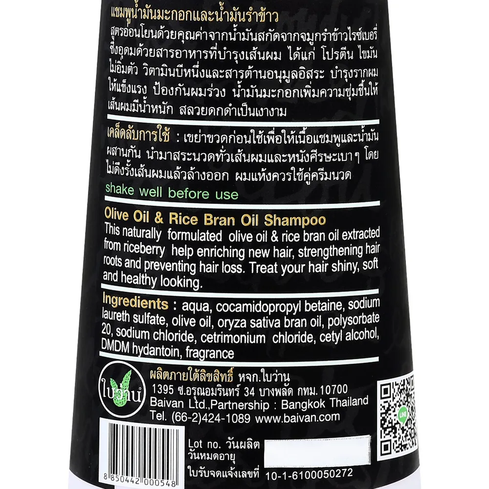 ใบว่าน แชมพู สูตรน้ำมันมะกอกและน้ำมันรำข้าว 300 มล.