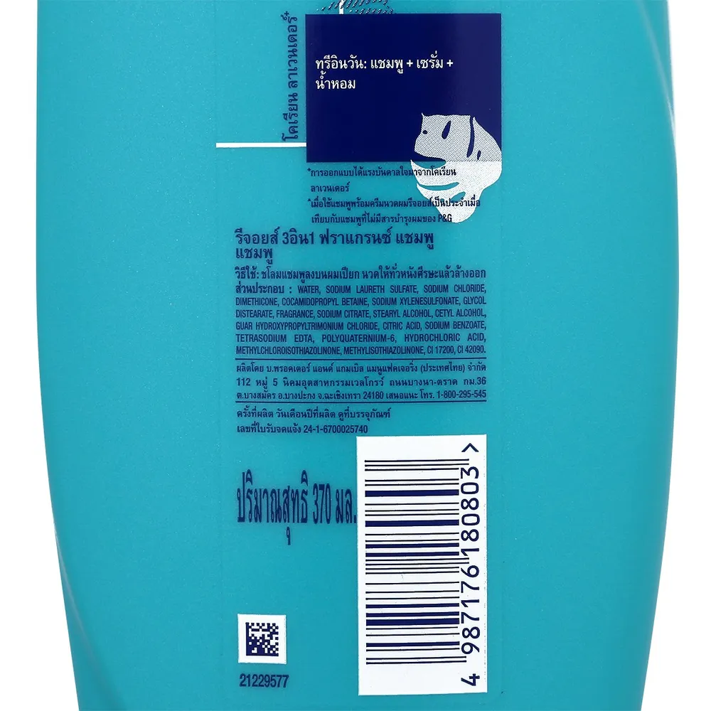 รีจอยส์ 3 อิน 1 แชมพูสระผม ลาเวนเดอร์เกาหลี สูตรนุ่มลื่นและฟื้นบำรุง 370 มล.