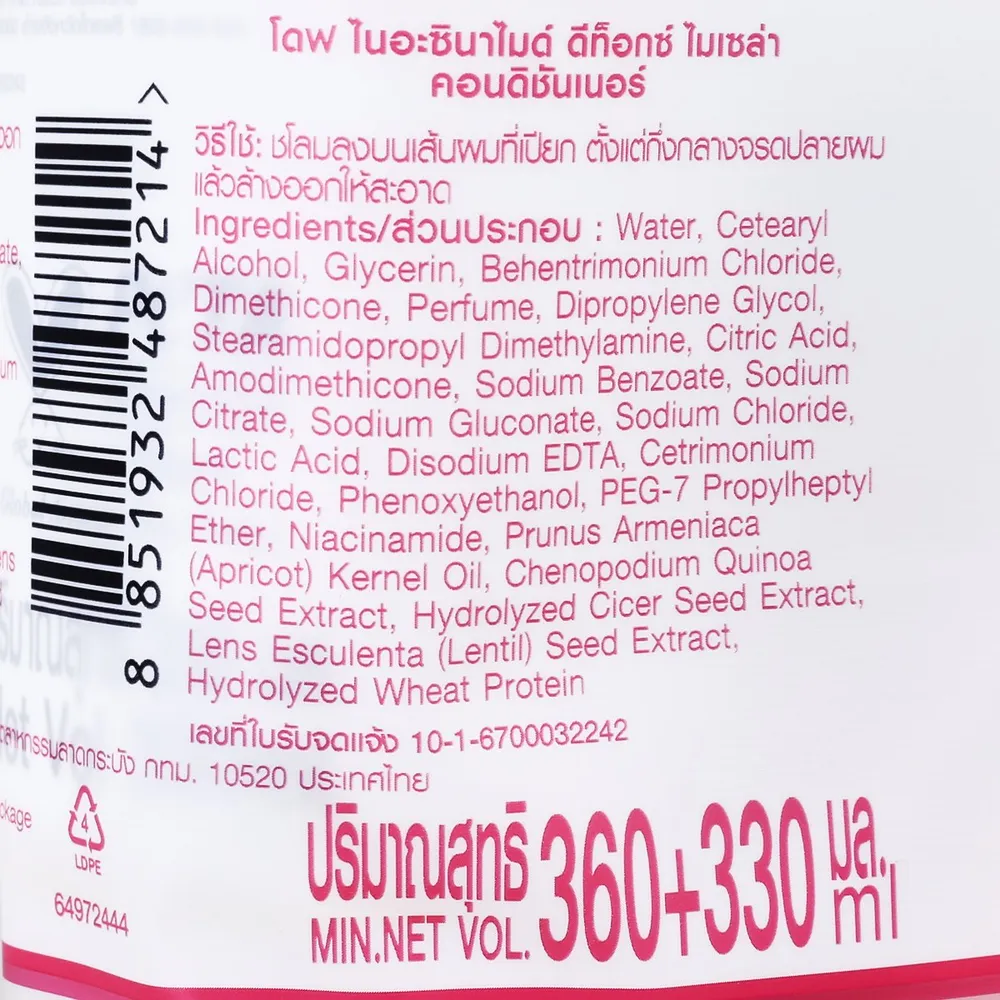 <p>โดฟ ไนอะซินาไมด์ ดีท็อกซ์ ไมเซล่า แชมพูและคอนดิชันเนอร์ 360+330 มล.<br />