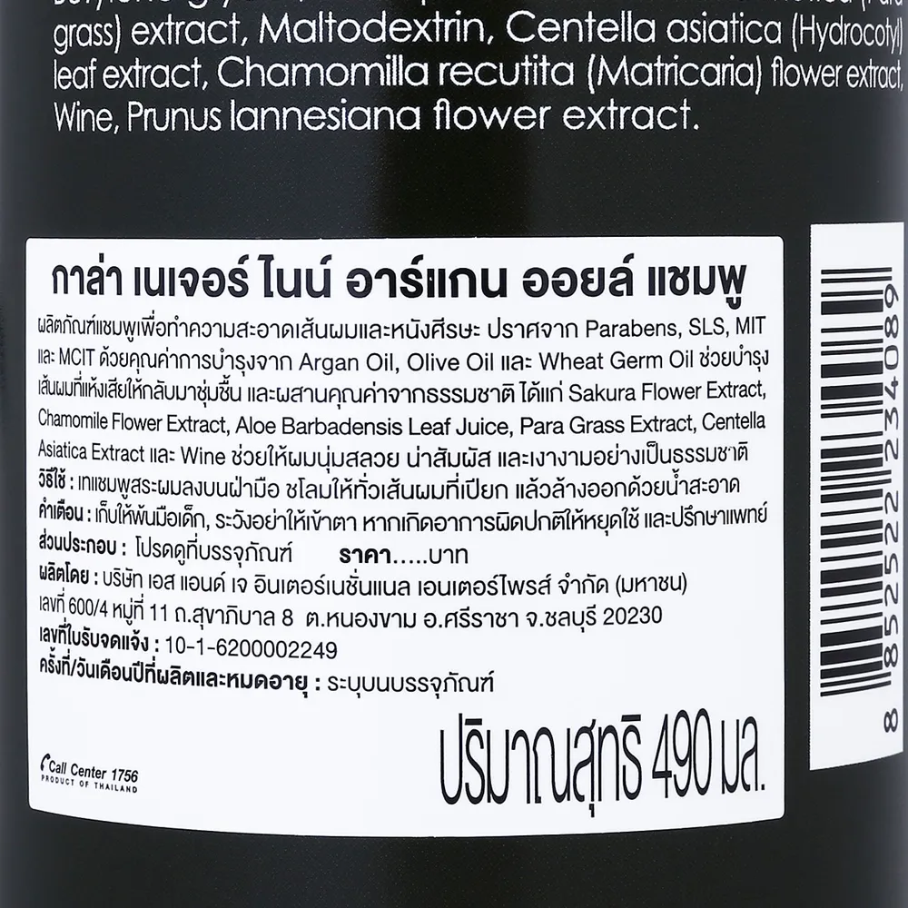- กาล่า เนเจอร์ไนน์ อาร์แกน ออยล์ แชมพู<br />