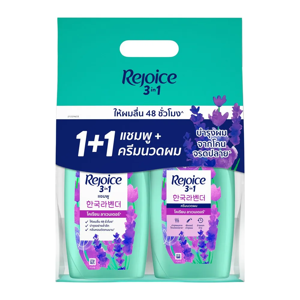 รีจอยส์ แชมพูและครีมนวดผม 3อิน1 โคเรียน ลาเวนเดอร์ บลูม 370 มล. แพ็ค 1+1