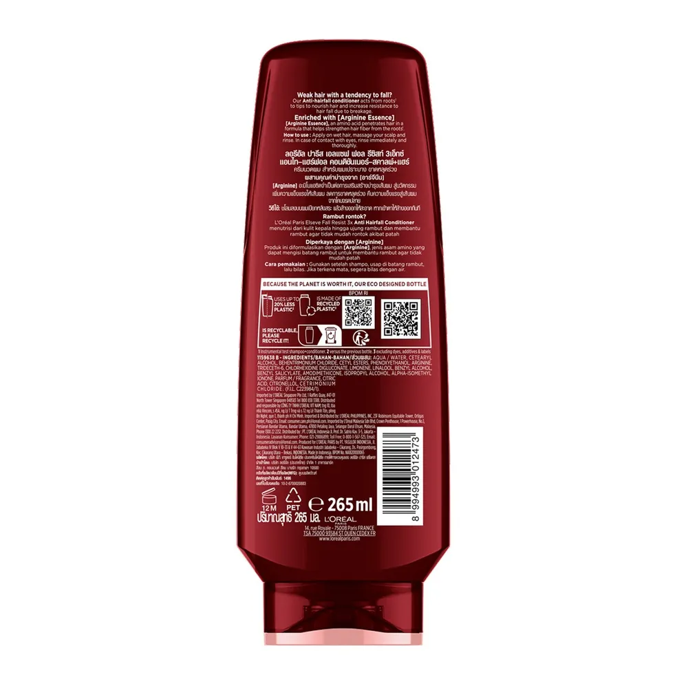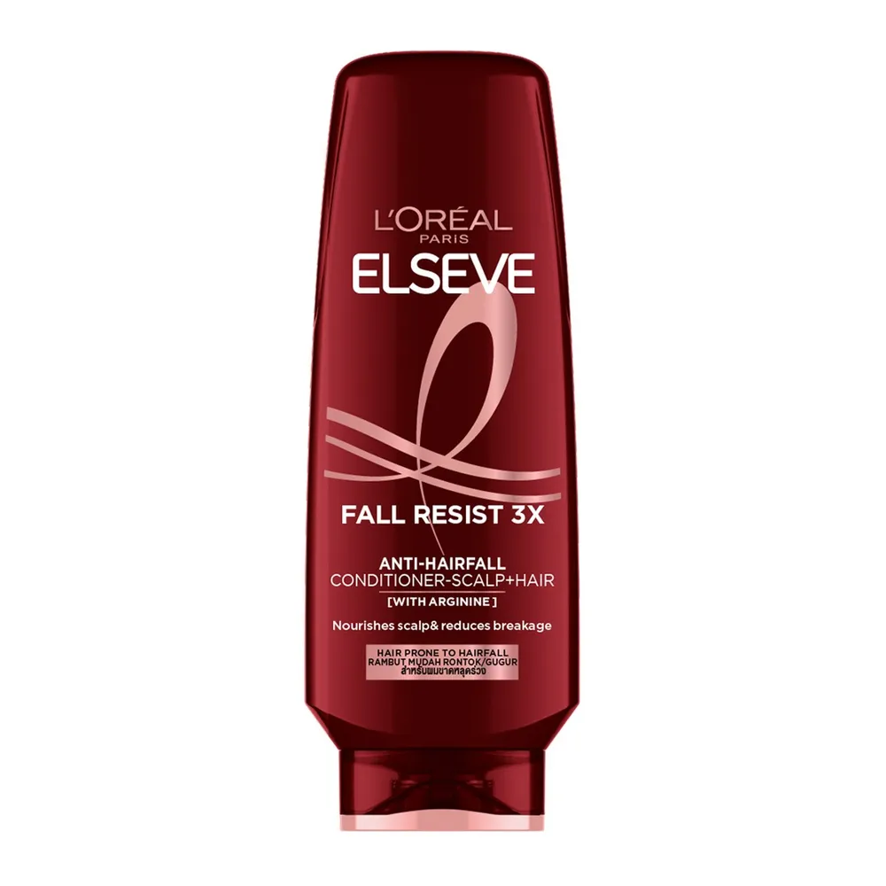 ลอรีอัล ปารีส เอลแซฟ ฟอล รีซิสท์ แอนไท-แฮร์ฟอล คอนดิชันเนอร์ สคาลพ์+แฮร์ ครีมนวดผมสูตรสำหรับลดผมขาดหลุดร่วง ด้วยคุณค่าจากอาร์จินีน อะมิโนแอซิดที่จำเป็นต่อการเสริมสร้างบำรุงเส้นผม สู่นวัตกรรมจาก ฟอล รีซิสท์ 3X นวัตกรรมล่าสุดจาก ลอรีอัล ปารีส<br />