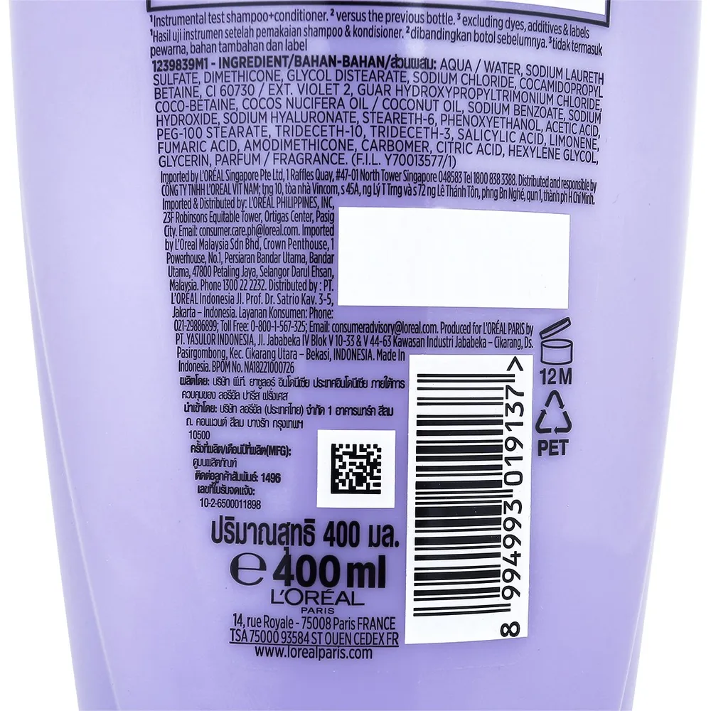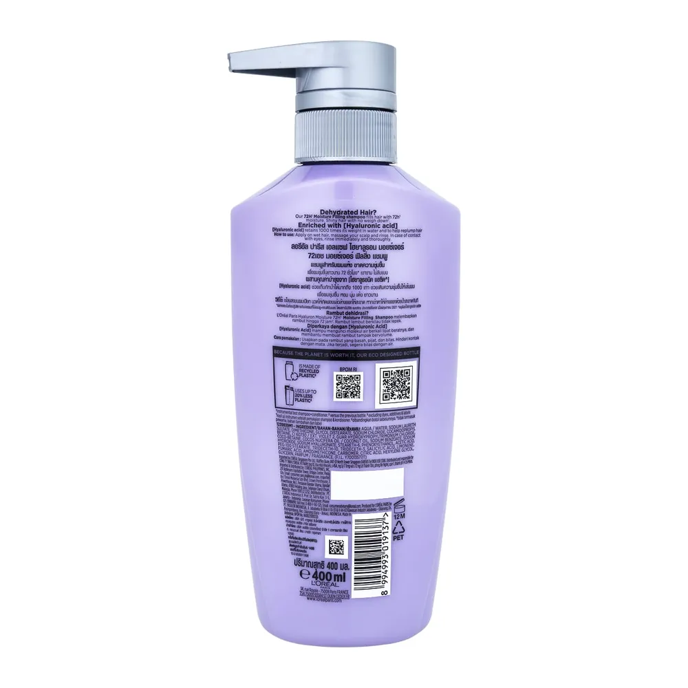 ลอรีอัล ปารีส เอลแซฟ ไฮยาลูรอน มอยซ์เจอร์ 72เอช มอยซ์เจอร์ ฟิลลิ่ง แชมพู 400 มล.