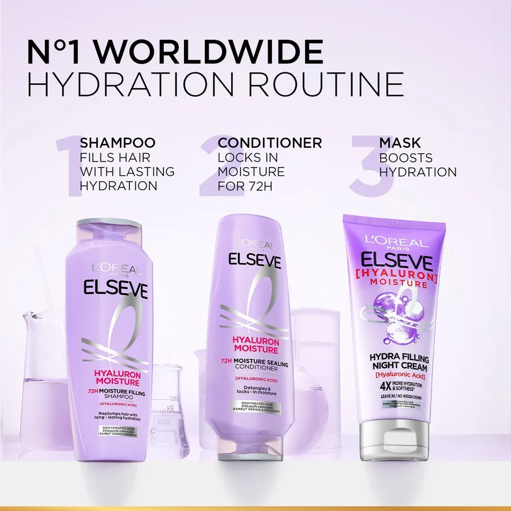 - ลอรีอัล ปารีส เอลแซฟ ไฮยาลูรอน มอยซ์เจอร์ 72เอช มอยซ์เจอร์ ฟิลลิ่ง แชมพู<br />