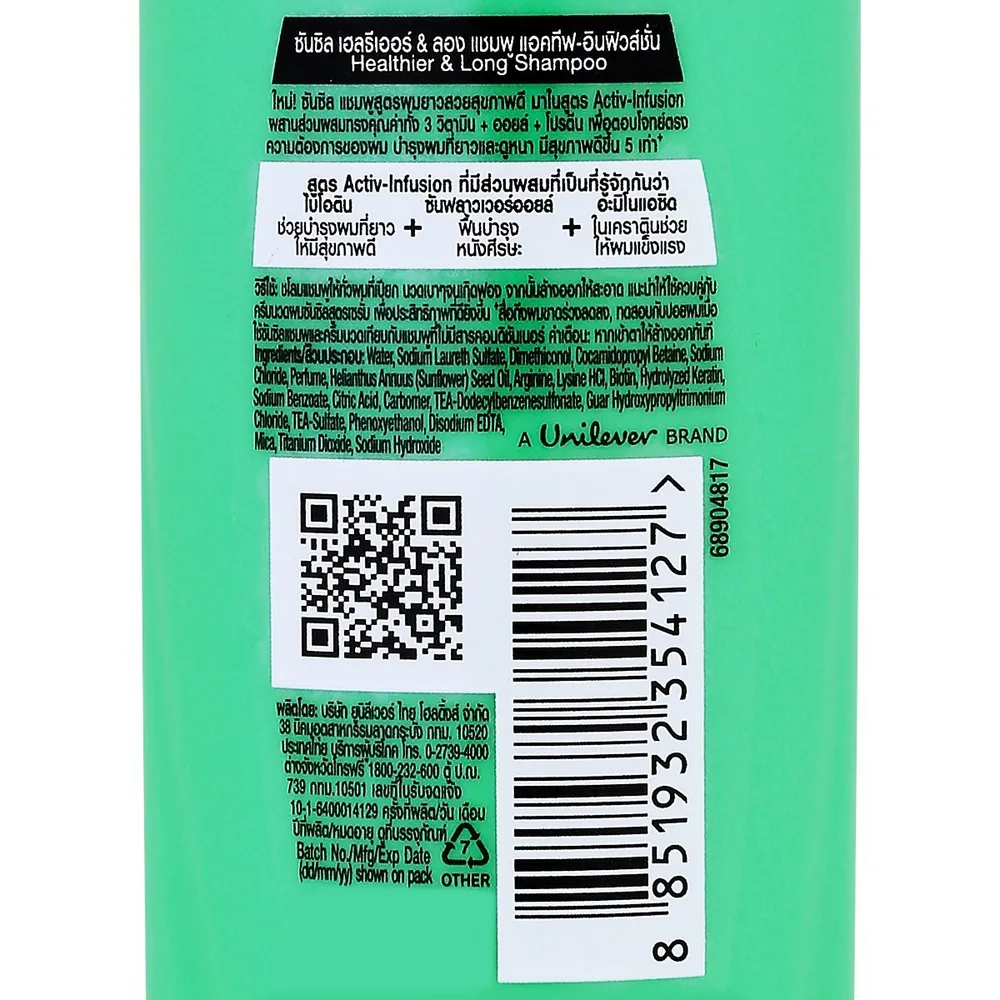 <p>ซันซิล แชมพู สูตรผมยาวสวยสุขภาพดี<br /> <br /> ซันซิล แชมพู สูตรผมยาวสวยสุขภาพดี ร่วมคิดค้นโดย ดร. ฟรานเชสก้า ฟัสโก ผู้เชี่ยวชาญด้านหนังศรีษะจากนิวยอร์ก ทำความสะอาดอย่างล้ำลึก พร้อมให้สารบำรุงแก่เส้นผม คืนชีวิตชีวาให้เส้นผมสุขภาพดี ดูสุขภาพดีเหมือนได้รับการดูแลจากซาลอนชั้นนำ<br /> <br /> - มีไบโอติน ช่วยบำรุงเส้นผมอย่างล้ำลึก<br /> - ผมยาวสวยเด่น มีสุขภาพดี ตั้งแต่โคนจรดปลาย<br /> - เส้นผมแข็งแรง ดูหนานุ่มขึ้น<br /> <br /> *ภาพประกอบใช้เพื่อการโฆษณาเท่านั้น</p>