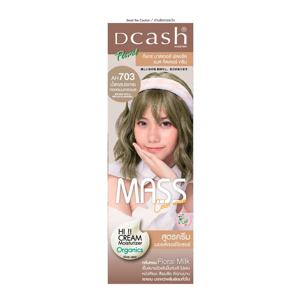 ดีแคช ผลิตภัณฑ์ครีมย้อมสีผม มาสเตอร์ แมส คัลเลอร์ ครีม สี AH703 น้ำตาลคาราเมลประกายทอง