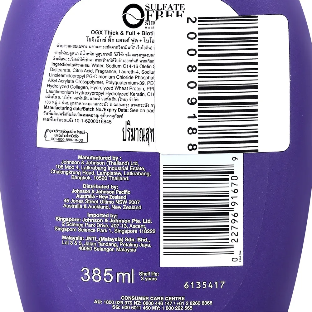 โอจีเอ็กซ์ ติ๊ก แอนด์ ฟูล + ไบโอติน แอนด์ คอลลาเจน แชมพู ที่มาพร้อมส่วนผสมเฉพาะด้วยการผสานสารสกัดจากวิตามินบี7 คอลลาเจน และโปรตีนข้าวสาลี เพื่อเติมสารบำรุงล้ำลึกสู่เส้นผม ช่วยให้ผมดูหนานุ่ม มีน้ำหนัก ดูสุขภาพดีจนคุณสัมผัสได้ด้วยตาเปล่า<br />