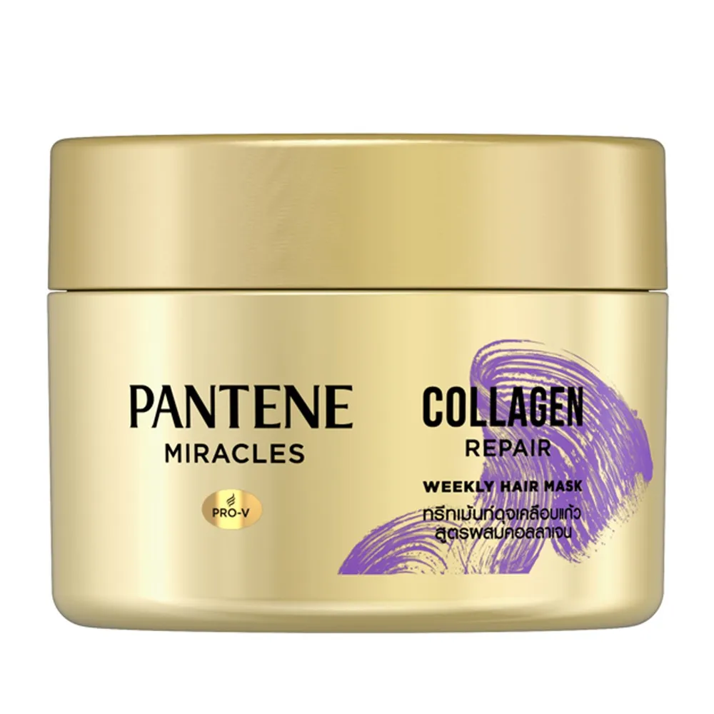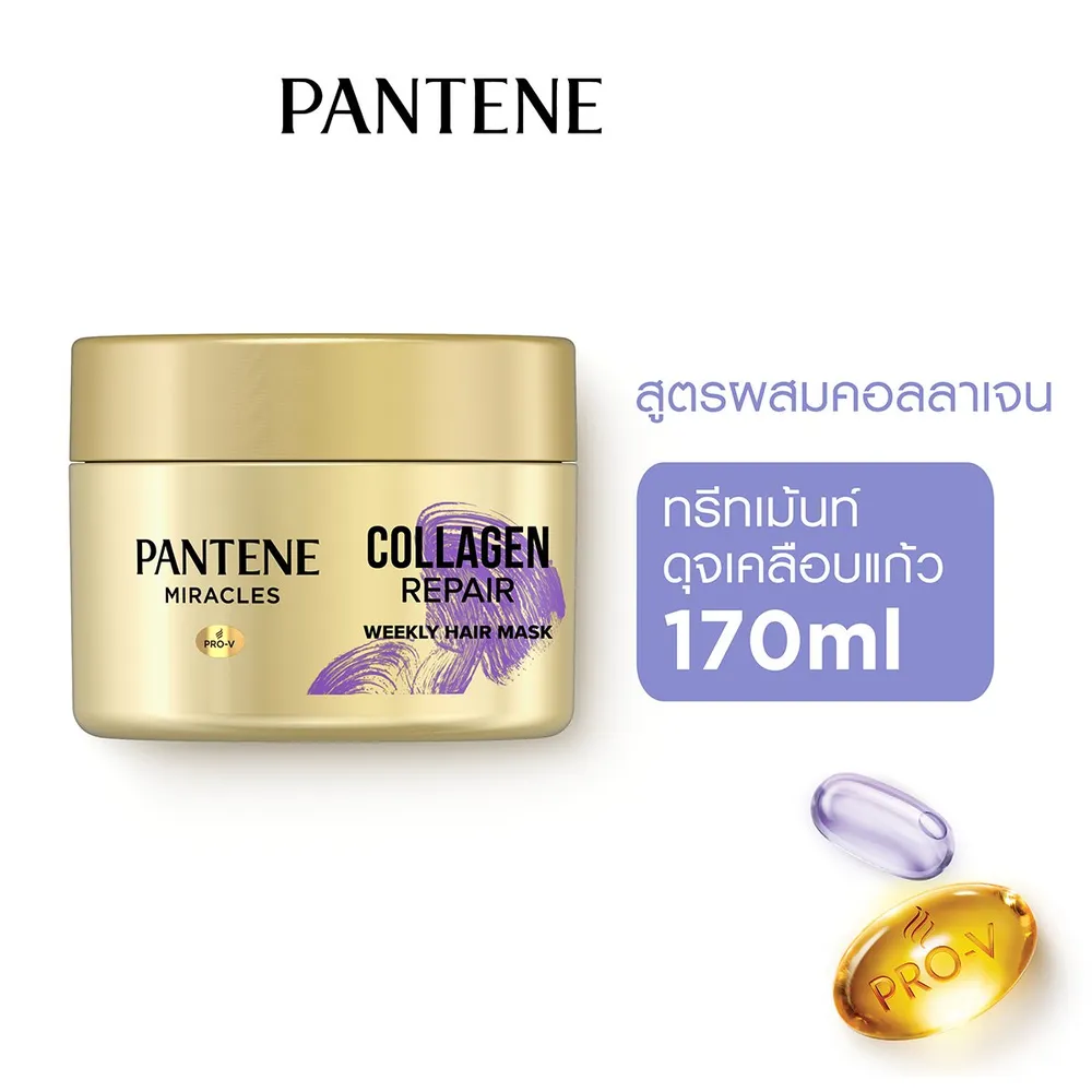 แพนทีน โปร-วี คอลลาเจน รีแพร์ วีคลี่ แฮร์มาส์กที่ผสานพลังจากส่วนผสมของโปร-วิตามินบี 5 และคอลลาเจน พลังการบำรุงจากคอลลาเจนเข้มข้นจะช่วยปกป้องผมและฟื้นฟูผมแห้ง ผมอ่อนแอ ผมเสีย ให้กลับมาสวย และดูมีสุขภาพดี<br />
