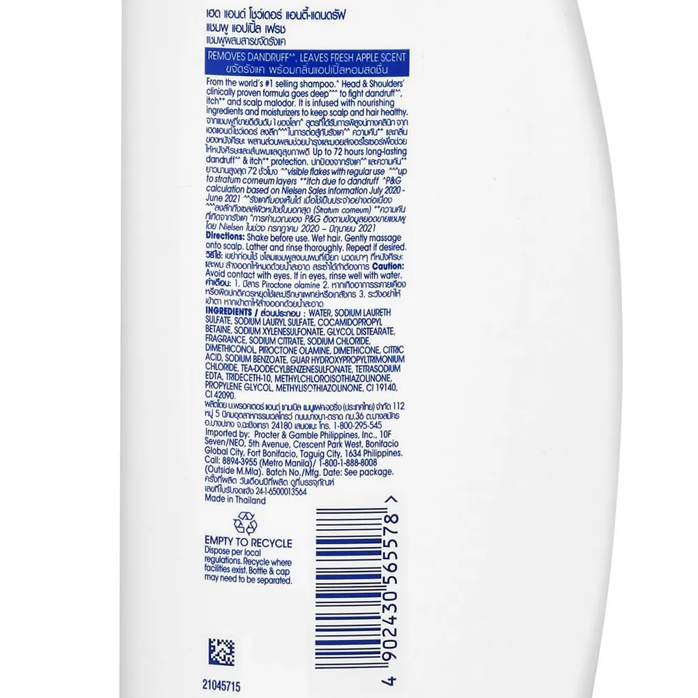 - เฮดแอนด์โชว์เดอร์ แชมพูขจัดรังแค สูตรแอปเปิ้ล เฟรช<br />