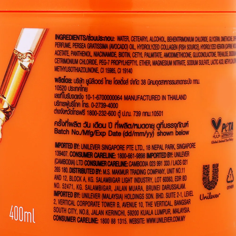- ทรีตเมนต์สูตรเฉพาะจากซันซิล ที่มาพร้อมแมกซ์ แคลเซียม และเคราติน ช่วยขจัดสิ่งสกปรกและฟื้นบำรุงผมแห้งเสีย<br />
