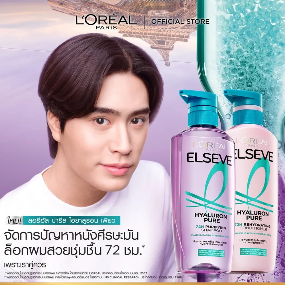 ลอรีอัล ปารีส เอลแซฟ ไฮยาลูรอนเพียว 72H ครีมนวดผม สำหรับหนังศรีษะมัน แต่ผมขาดความชุ่มชื้น ผสานส่วนผสมจาก ไฮยาลูรอนิค แอซิด + ซาลิไซลิก แอซิด ช่วยกักเก็บความชุ่มชื้น และฟื้นบำรุงเส้นผมได้อย่างล้ำลึก เพื่อผมนุ่ม เรียบลื่น เงางามขึ้น 2เท่า*<br />