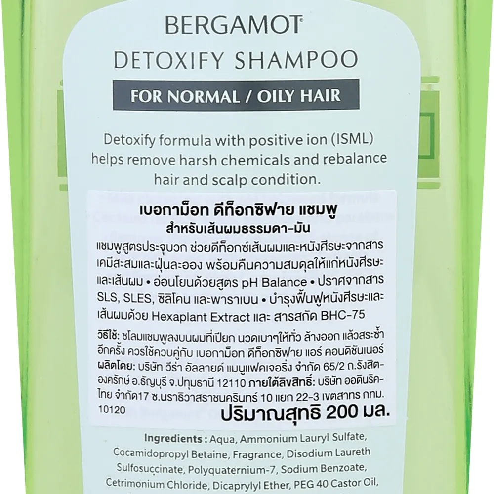 เบอกาม็อท แชมพู สูตรดีท็อกซิฟาย สำหรับผมธรรมดา/มัน 200 มล.