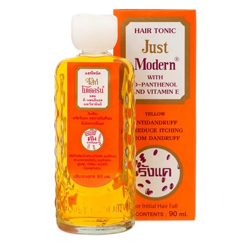 จัสท์โมเดอร์น แฮร์โทนิค วิตามินบำรุงผมและหนังศีรษะ ช่วยขจัดอาการคันและรังแค มีส่วนผสมของดี-แพนธีนอลและวิตามินอี ช่วยลดอาการคันจากรังแค และมอบให้ความชุ่มชื่นแก่เส้นผมและหนังศีรษะ<br />
