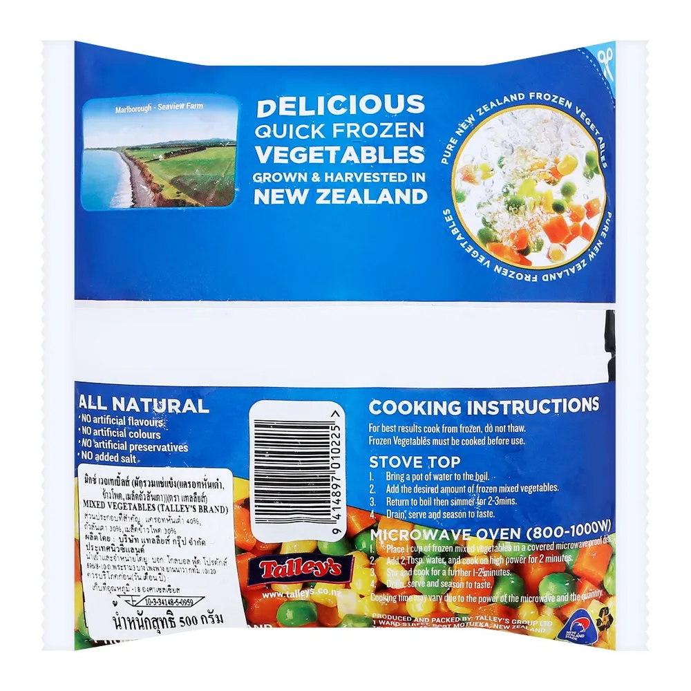 แทลลี่ ผักรวมแช่แข็ง แบรนด์ดีที่ใสใจตั้งแต่การปลูกผัก ซึ่งปลูกในดินที่สะอาดอุดมสมบูรณ์ของประเทศนิวซีแลนด์<br />