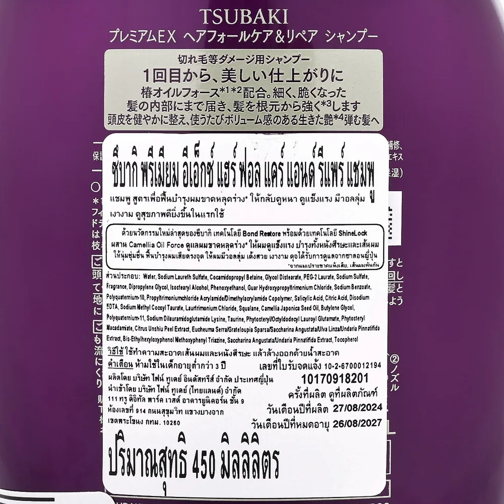 - ซึบากิ พรีเมียม อีเอ็กซ์ แฮร์ ฟอล แคร์ แอนด์ รีแพร์ แชมพู<br />