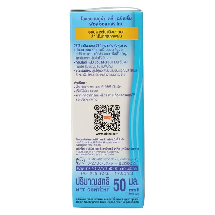 <p>โลแลน เนทูร่า เดลี่ แฮร์ เซรั่ม สำหรับทุกสภาพผม 50 มล.<br />