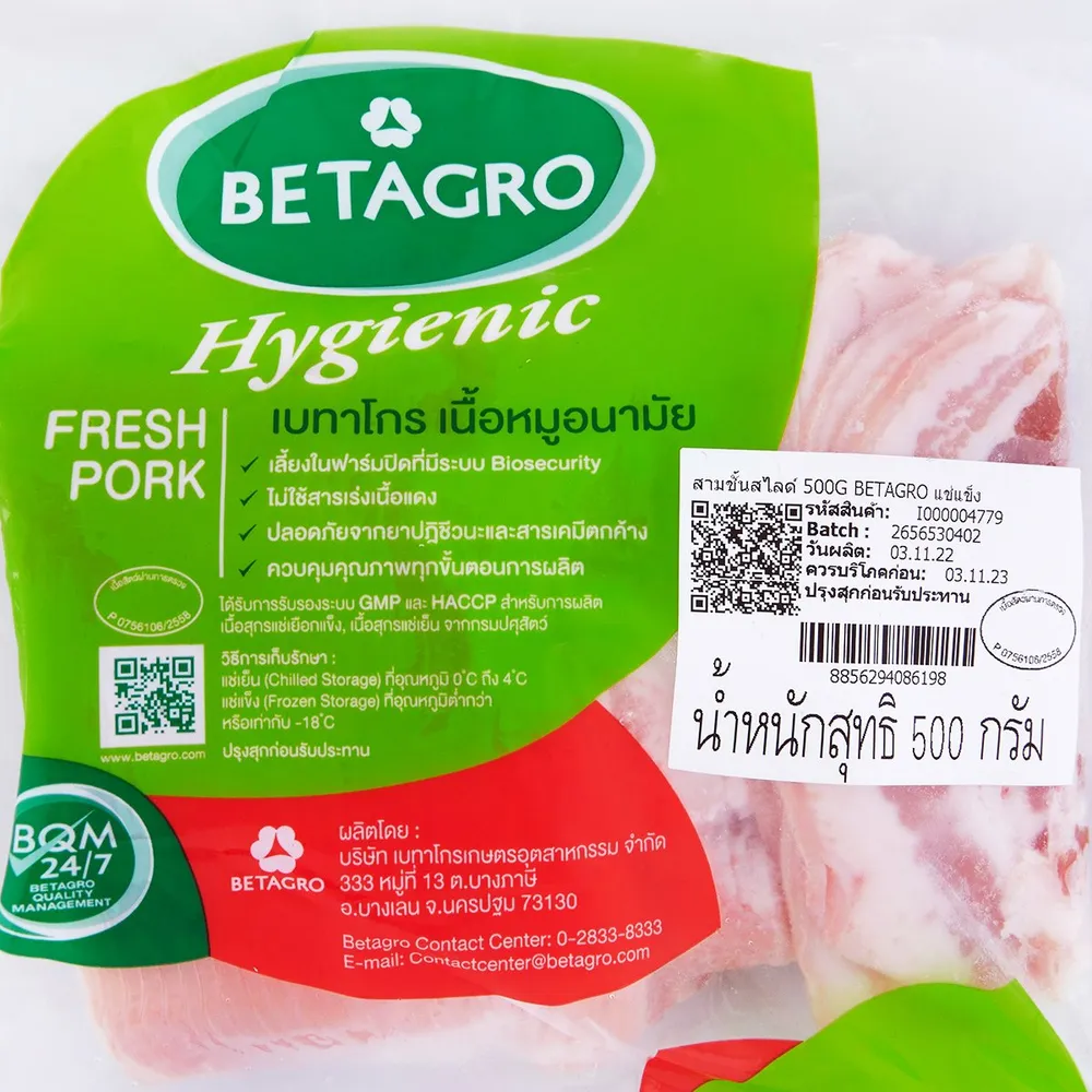 เบทาโกร เนื้อหมูสามชั้นสไลซ์ 500 ก.