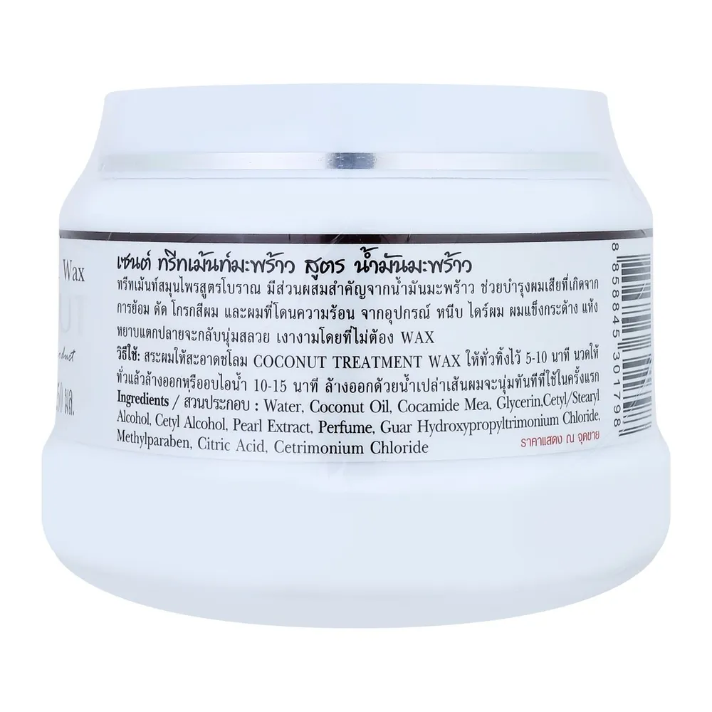 <p><span style="color: #ff0000;"><span style="color: #000000;">เซนต์ ทรีทเม้นท์มะพร้าว สูตรน้ำมันมะพร้าว 250 มล.<br /><br />เซนต์ ทรีทเม้นท์มะพร้าว เป็นทรีทเม้นท์บำรุงผมสูตรเข้มข้น ผลิตภัณฑ์ OTOP ที่ผสมน้ำมันมะพร้าว ลาโนลีนแว็กซ์ และวิตามินบำรุง เหมาะสำหรับฟื้นฟูผมแห้งเสีย แตกปลาย จากการดัด ย้อม หรือความร้อน ให้กลับมานุ่มสลวย เงางาม&nbsp;<br /><br />- สรรพคุณ: ช่วยบำรุงผมแห้งกระด้าง แห้งหยาบ แตกปลายจากการทำเคมีและโดนความร้อน<br />- ส่วนผสมหลัก: น้ำมันมะพร้าว, ลาโนลีนแว็กซ์, โปรวิตามิน B5</span><br /><br />*บริษัทฯ ขอสงวนสิทธิ์ในการปรับเปลี่ยนราคาจำหน่ายและโปรโมชั่น รวมถึงแพ็คเกจและปริมาณสินค้าจากผู้ผลิตได้ตามความเหมาะสม โดยไม่จำเป็นต้องแจ้งให้ทราบล่วงหน้า<br /><br />*สีของสินค้าอาจมีความแตกต่าง ขึ้นอยู่กับการตั้งค่าของแต่ละหน้าจอ และภาพประกอบใช้เพื่อการโฆษณาเท่านั้น<br /></span></p>