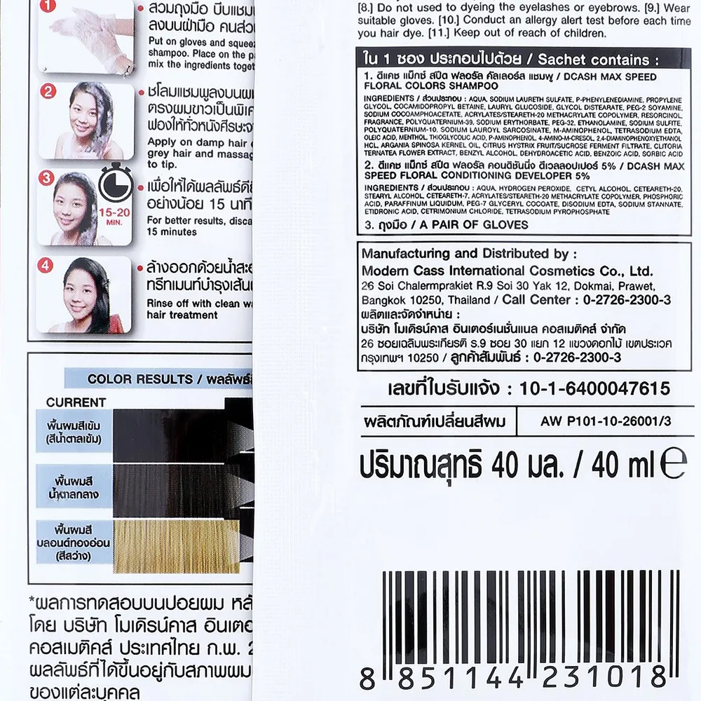 - ดีแคช แม็กซ์ สปีด ฟลอรัล คัลเลอร์ส แชมพูเปลี่ยนสีผม<br />