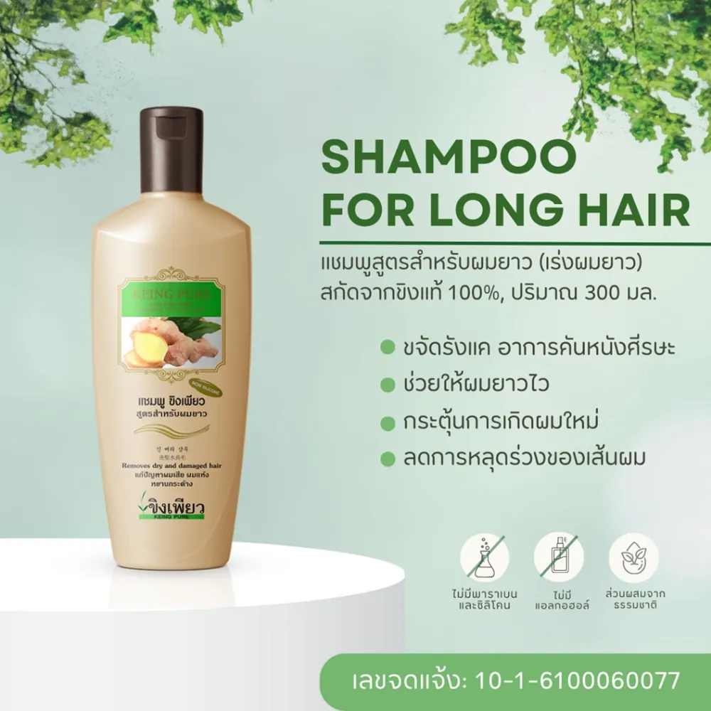 ขิงเพียว แชมพู สูตรสำหรับผมยาว ทำความสะอาดอย่างล้ำลึก พร้อมให้สารบำรุงแก่เส้นผม คืนชีวิตชีวาให้เส้นผมสุขภาพดี ช่วยให้ผมมีน้ำหนัก บำรุงผมจากภายนอก และซึมซาบสู่แกนผมภายใน<br />