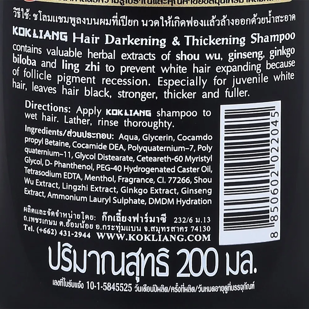 ก๊กเลี้ยง แชมพู สูตรแฮร์ดาร์คเคนนิ่ง แอนด์ ทิคเคนนิ่ง ขนาด 200 มล.