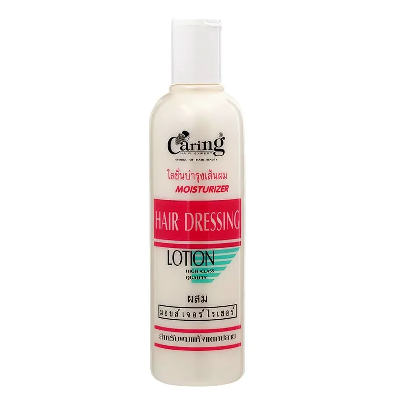 แคริ่ง โลชั่นบำรุงผม แก้ปัญหาเส้นผมเสีย ขาดน้ำหนัก แตกปลาย ปกป้องผมเสมือนฟิล์มเคลือบเส้นผม ไม่เหนียวเหนอะหนะ ทำให้ผมมีสุขภาพดี อยู่ทรงตลอดวัน สูตรพิเศษของวิตามิน อี และดีแพนธีนอลช่วยบำรุงผมให้มีสุขภาพดี<br />