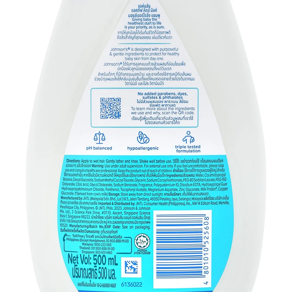 จอห์นสัน แอคทีฟ คิดส์ มิลค์ มอยส์เจอร์ไรซิ่ง แชมพู 500 มล.