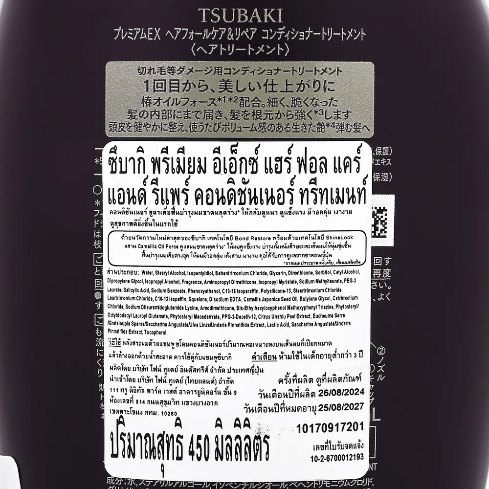 - ซึบากิ พรีเมียม อีเอ็กซ์ แฮร์ ฟอล แคร์ แอนด์ รีแพร์ คอนดิชันเนอร์ ทรีทเมนท์<br />