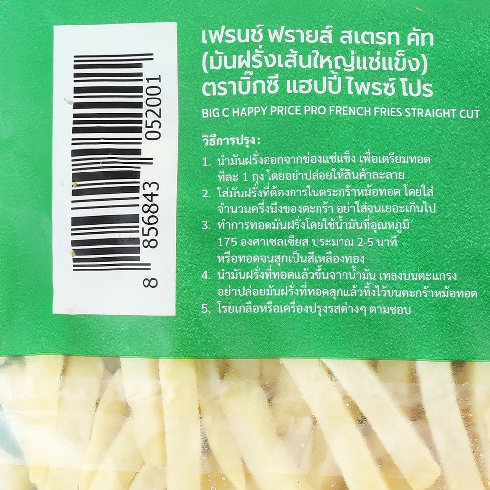 <p>บิ๊กซี แฮปปี้ ไพรซ์ โปร มันฝรั่งเส้นใหญ่แช่แข็ง<br /> <br /> บิ๊กซี ซูเปอร์เซ็นเตอร์ เลือกสรรผลิตภัณฑ์อาหารสด ทั้งเนื้อสัตว์ ผัก ผลไม้ และอาหารแช่แข็งต่างๆ มาเพื่อให้ลูกค้าเลือกซื้อได้ตามความต้องการ เฟร้นช์ฟรายส์แช่แข็งตราบิ๊กซี จึงเป็นหนึ่งในสินค้าคุณภาพเยี่ยมที่คัดสรรมาเพื่อลูกค้าทุกท่าน<br /> <br /> - บิ๊กซี แฮปปี้ ไพรซ์ โปร มันฝรั่งเฟร้นช์ฟรายส์เส้นใหญ่แช่แข็ง<br /> - ผลิตจากวัตถุดิบคุณภาพดี<br /> - สำหรับนำไปทอด หรืออบ<br /> - ให้รสชาติอร่อย มันฝรั่งเต็มคำ<br /> <br />