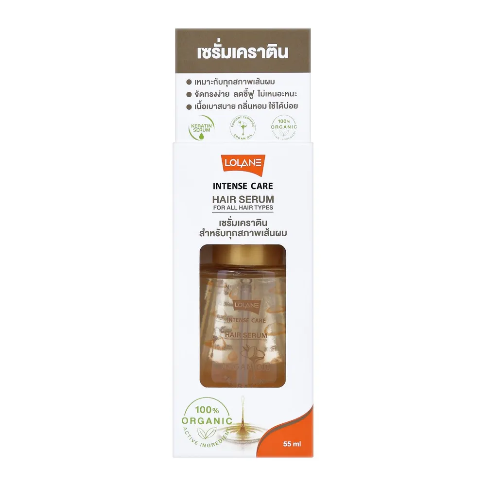 ฟื้นฟูเส้นผมให้แข็งแรง จัดทรงง่าย พร้อมลดอาหารชี้ฟู ด้วยโลแลน อินเทนซ์ แคร์ เซรั่มเคราติน สำหรับทุกสภาพเส้นผม โดยเป็นเซรั่มเนื้อบางเบา ไม่เหนียวเหนอะหนะ และมีส่วนผสมออร์แกนิก 100% จากน้ำมันอาร์แกน และสารสกัดน้ำมันชูฟ่า<br />