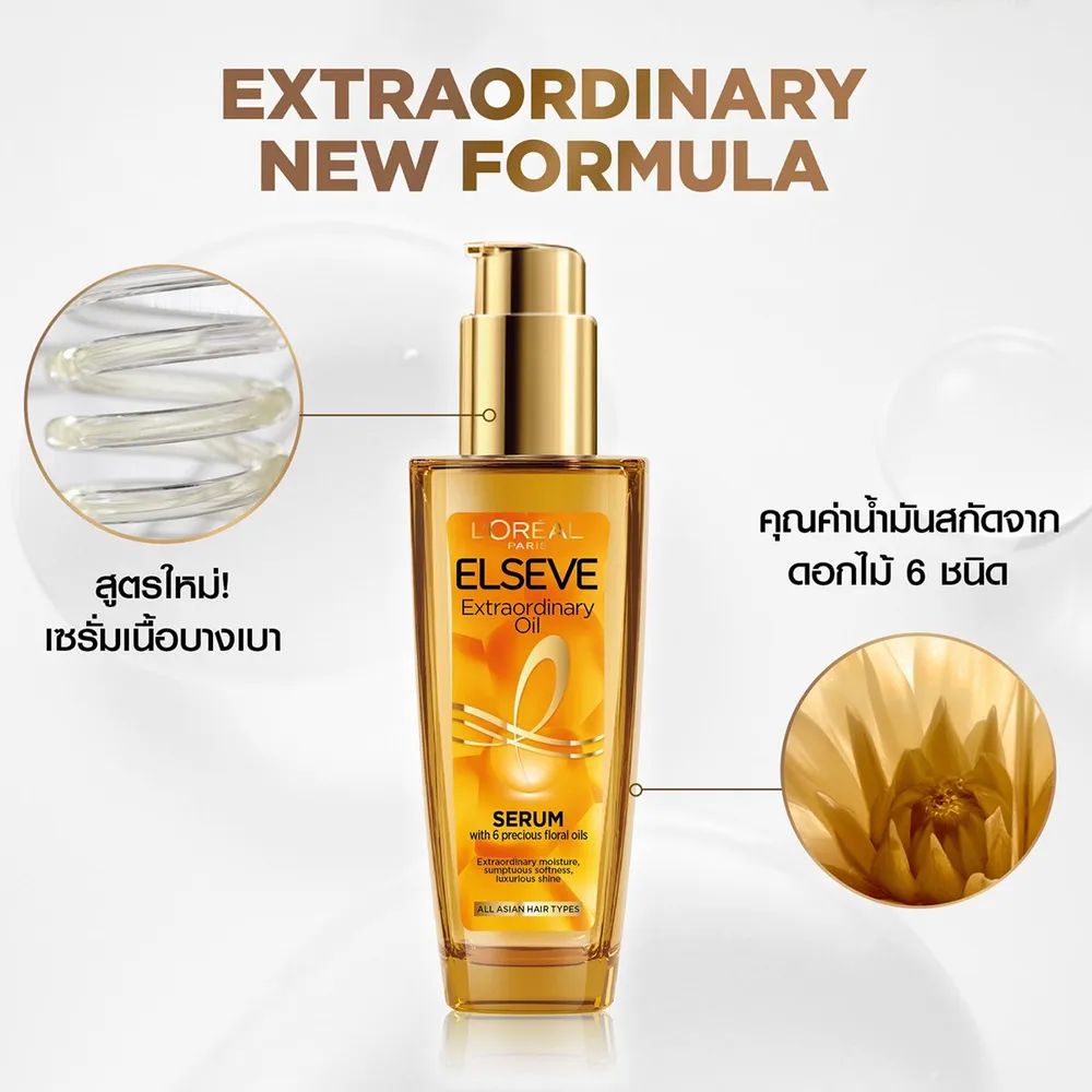 ออยล์ที่สามารถบำรุงผมได้อย่างล้ำลึก และคืนความชุ่มชื่นให้หนังศรีษะ อย่างลอรีอัล ปารีส เอลเซฟ เอ็กซ์ตรอว์ดินารี่ ออยล์ สำหรับผมทุกรูปแบบ สีทอง ที่มีสารสกัดและน้ำมันจากดอกไม้ เพื่อปกป้องเส้นผมจากความร้อน และให้ผมเรียบลื่น นุ่มสลวย ไม่พันกัน<br />