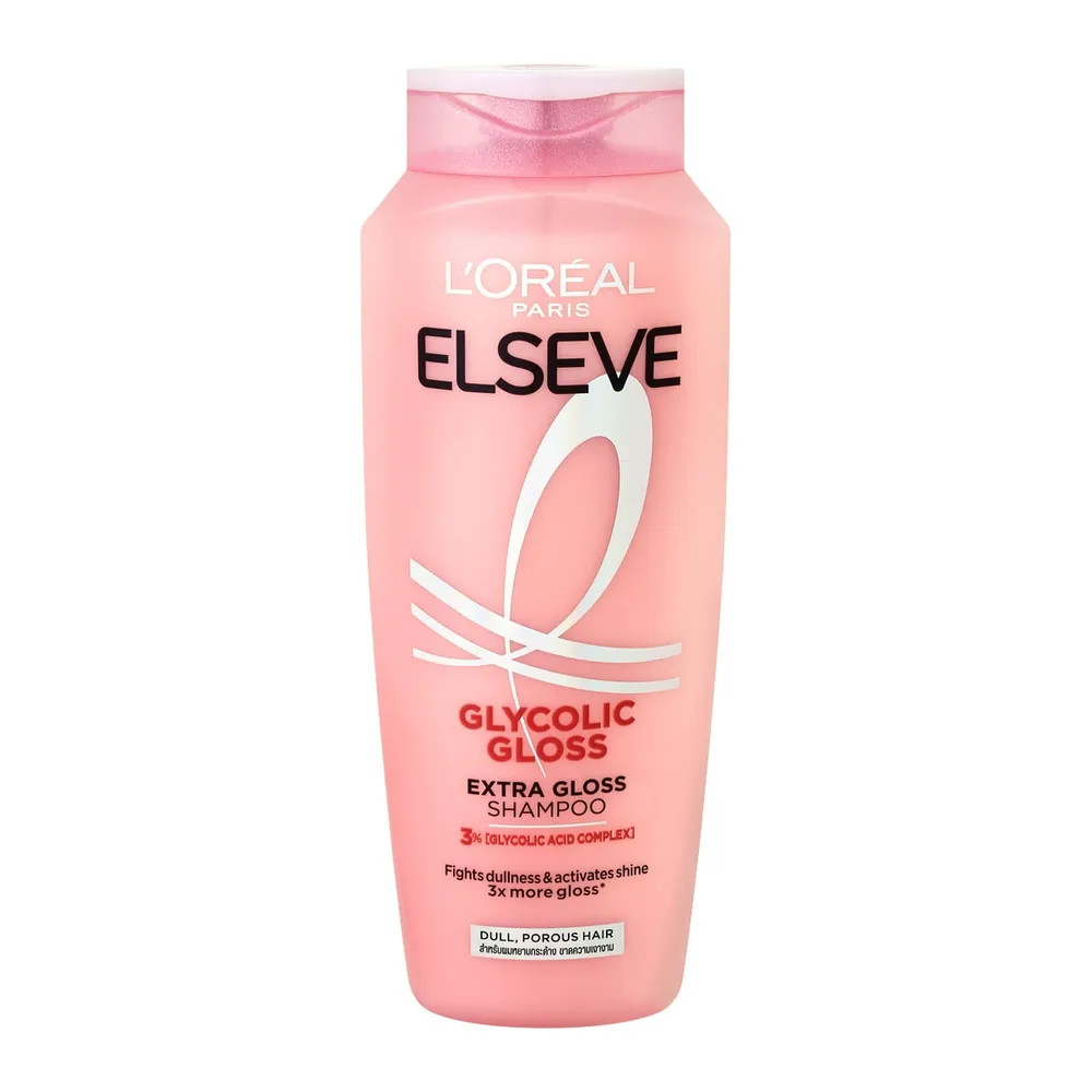 ลอรีอัล ปารีส เอลแซฟ ไกลโคลิค กลอส เอ็กซ์ตร้า กลอส แชมพู แชมพูสำหรับผมหยาบกระด้าง ขาดความเงางาม มีค่า pH เป็นกรดอ่อน ช่วยทำความสะอาดอย่างลํ้าลึก เพื่อผมดูสุขภาพดี เงางามขึ้น 3 เท่า* ผสานคุณค่าบำรุง 3% จาก [ไกลโคลิค แอซิด คอมเพล็กซ์] เข้าฟื้นบำรุงอย่างลํ้าลึก ช่วยให้ผมเรียบลื่น เพื่อผมเงางาม ดูสุขภาพดี<br />