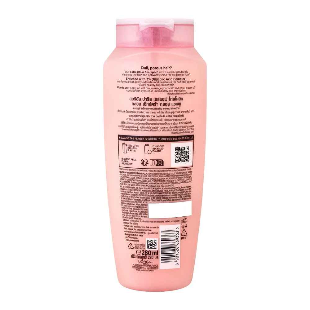 ลอรีอัล ปารีส เอลแซฟ ไกลโคลิค กลอส เอ็กซ์ตร้า กลอส แชมพู 280 มล.