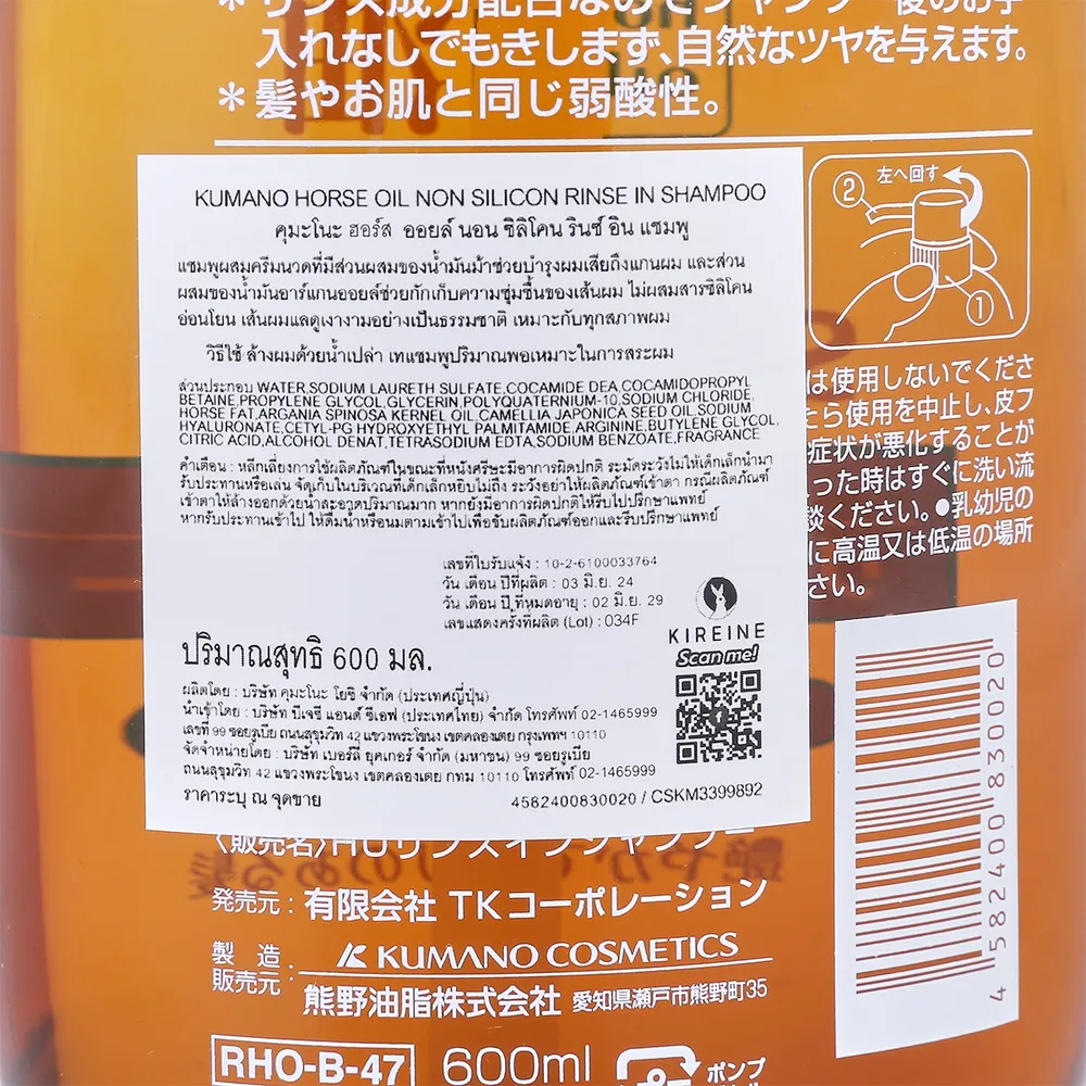 <p>คุมาโนะ ฮอร์ส ออยล์ น็อน ซิลิโคน รินซ์ อิน แชมพู<br />
