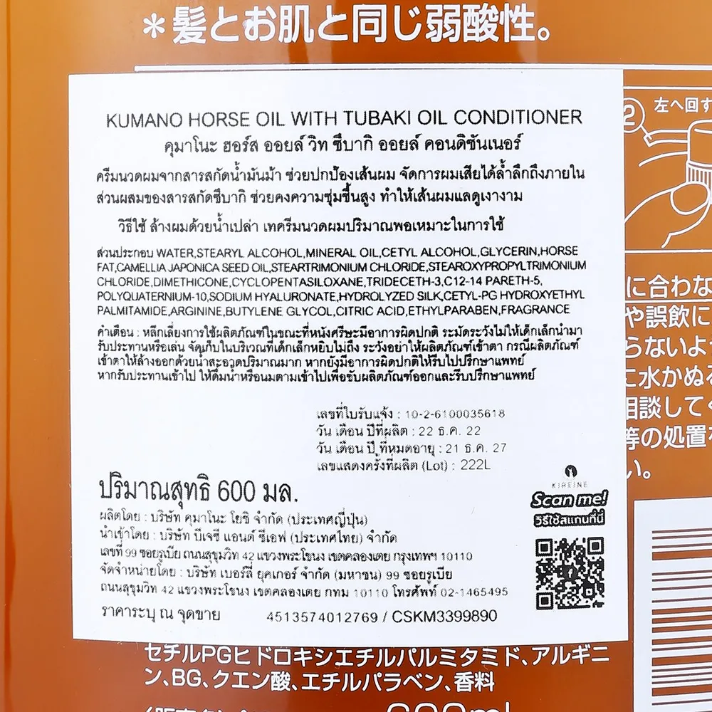 <p>คุมาโนะ ฮอร์ส ออยล์ วิช ซึบากิ ออยล์ คอนดิชั่นเนอร์<br />