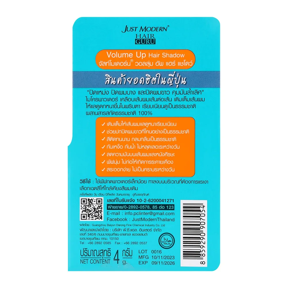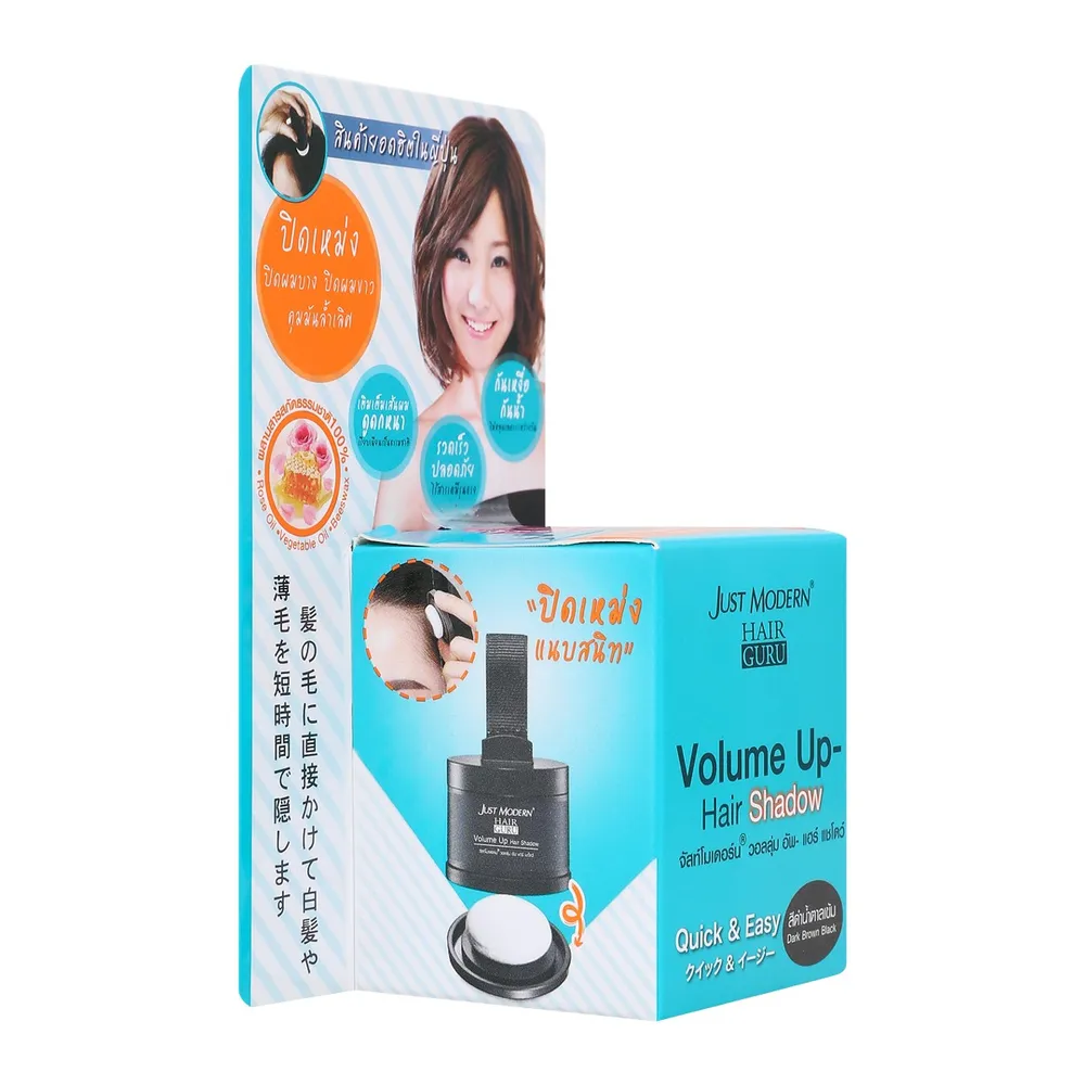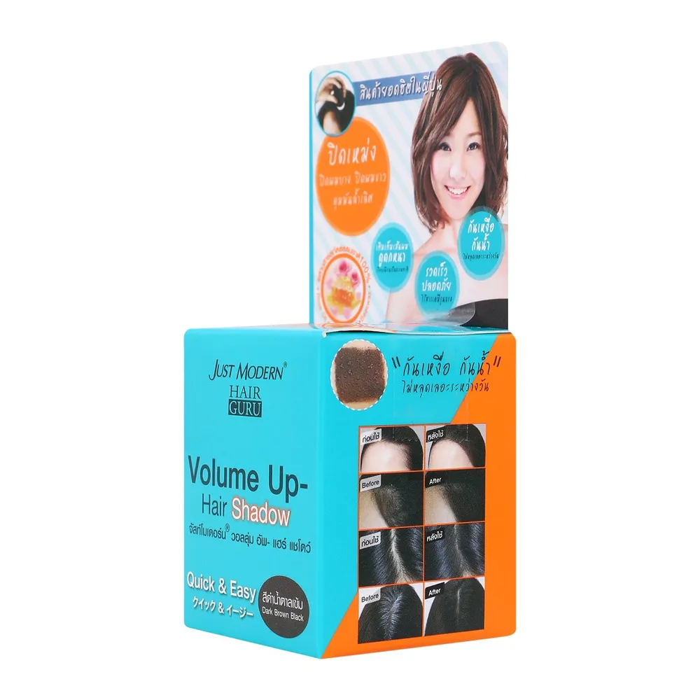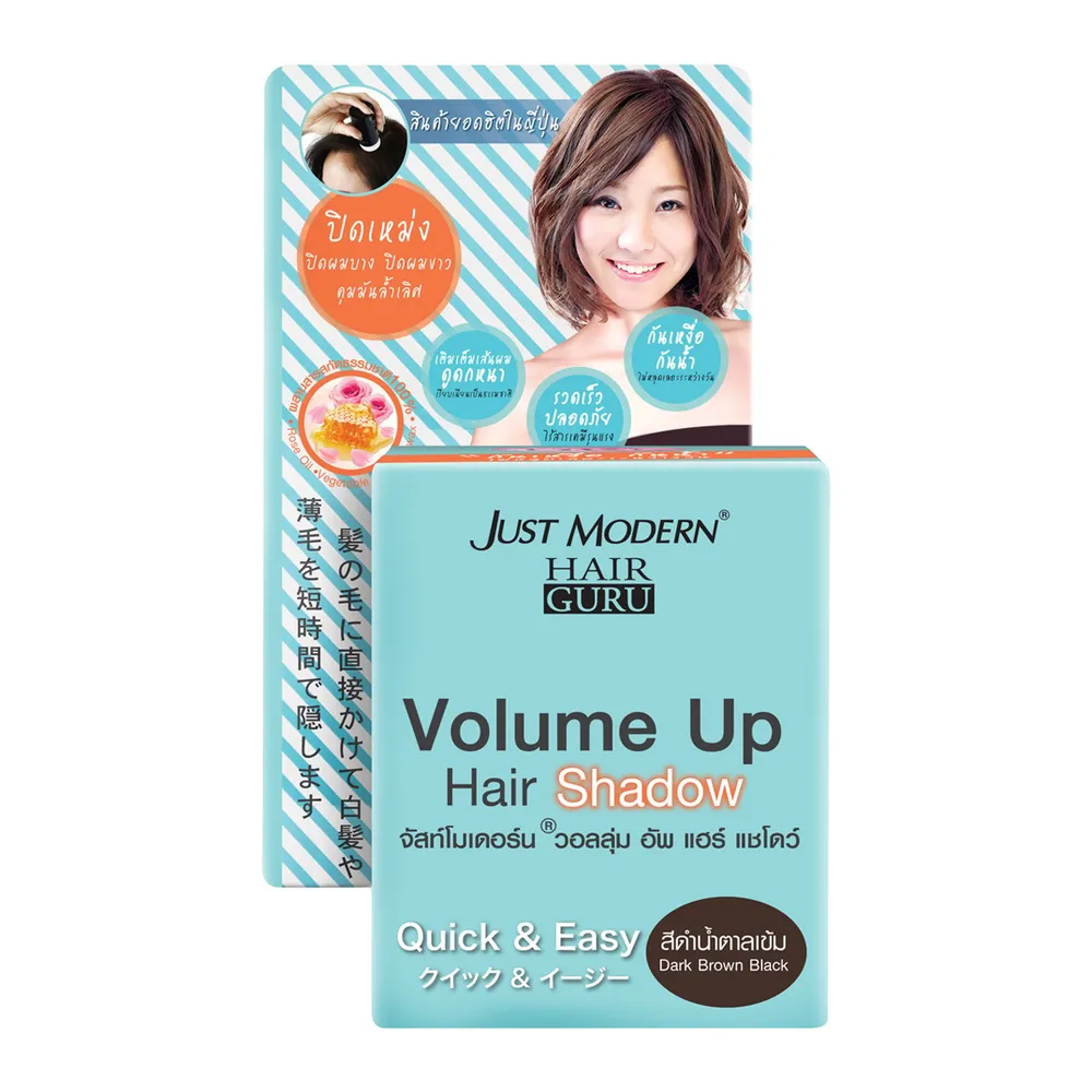 จัสท์โมเดอร์น วอลลุ่มอัพ แฮร์แชโดว์ ผลิตภัณฑ์จัดแต่งผมที่ช่วยปิดเหม่ง ปิดผมบาง ปิดผมขาว และควบคุมความมันด้วยไมโครพาวเดอร์ ที่เคลือบเส้นผมแบบเส้นต่อเส้น เติมเต็มเส้นผมให้แลดูดกหนาขึ้นในพริบตา เรียบเนียนดูเป็นธรรมชาติ<br />