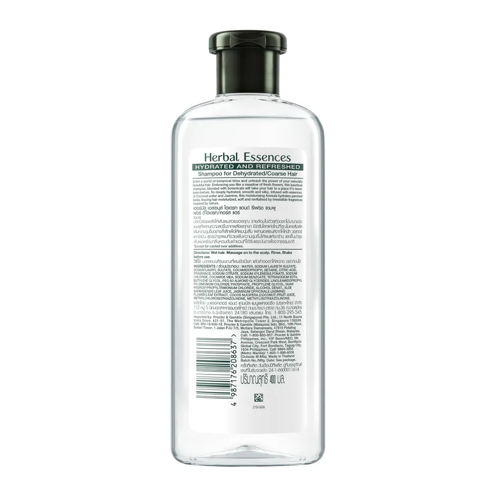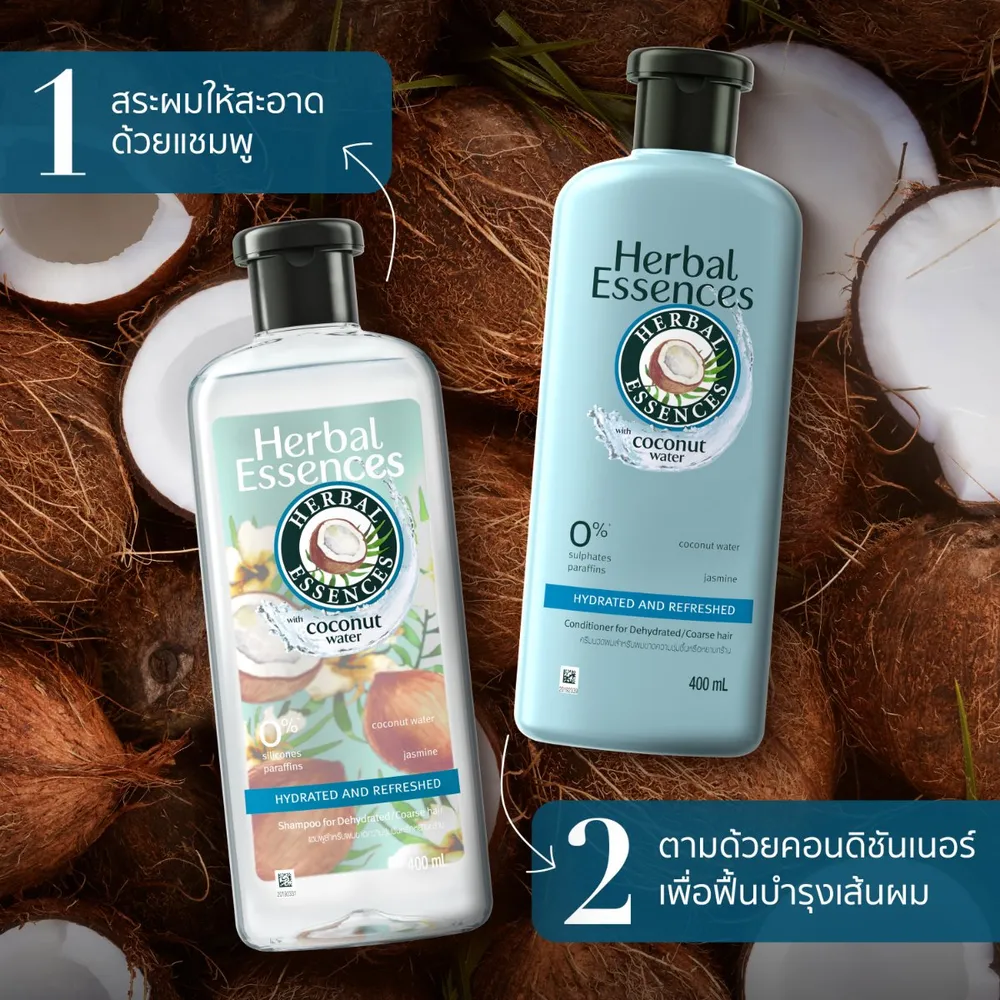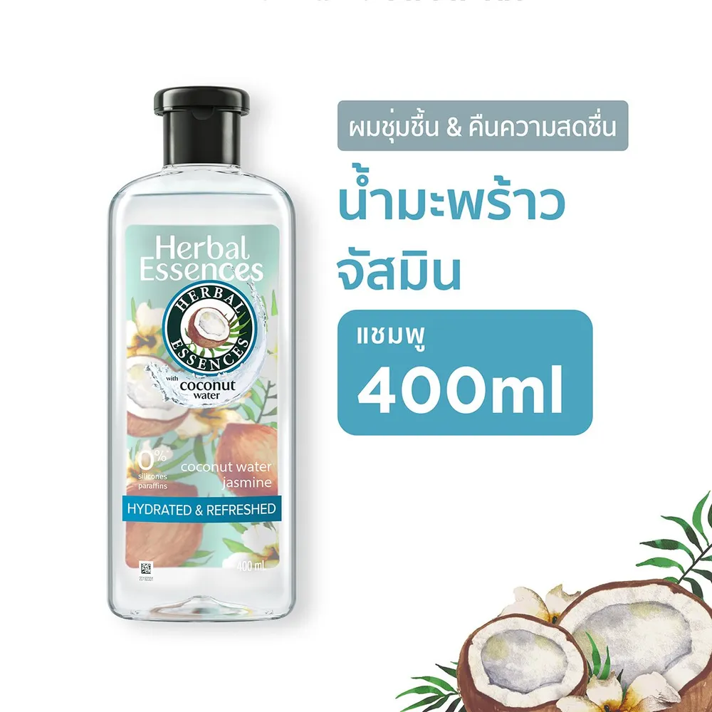 เฮอร์บัล เอสเซนส์ ไฮเดรท แอนด์ รีเฟรช แชมพู สูตรโคโค่นัทวอเตอร์ 400 มล.