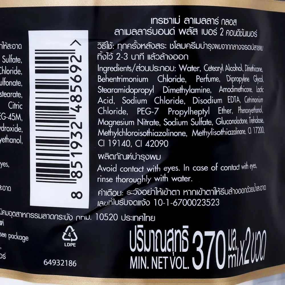 เทรซาเม่ ลาเมลลาร์ กลอส ลาเมลลาร์บอนด์ พลัส แชมพูและคอนดิชันเนอร์ 370 มล. x 2 ชิ้น