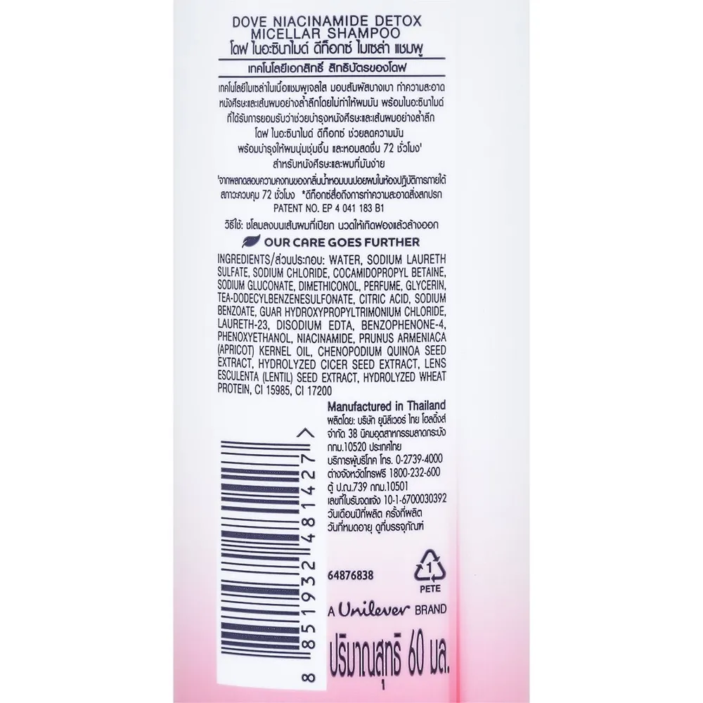 โดฟ ไนอะซินาไมด์ ดีท็อกซ์ ไมเซล่า แชมพู 60 มล.