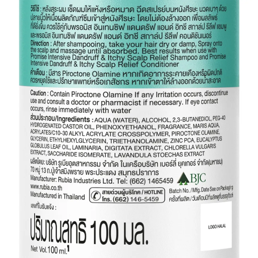 พรอมิส อินเทนซิฟ แดนดรัฟ แอนด์ อิทชี สกาล์ป รีลีฟ สเปรย์ 100 มล.