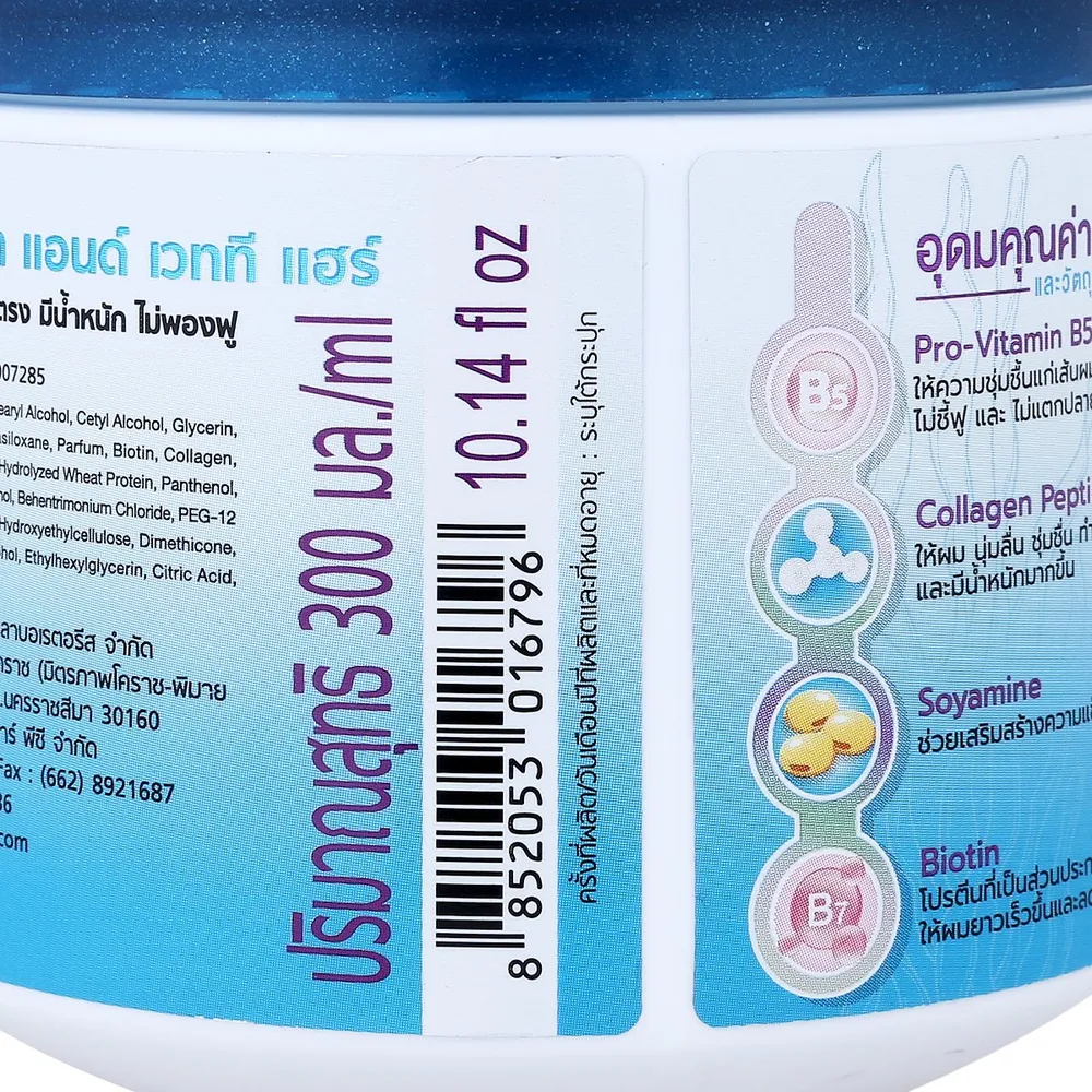 ผลิตภัณฑ์คืนความตรงสลวยและสุขภาพดีด้วยการผสานพลังจาก Pro-Vitamin B5, Collagen Peptide, Soyamine และ Biotin ส่วนผสมที่คัดสรรมาอย่างพิถีพิถัน เพื่อบำรุง และปกป้องเส้นผมจากความเสียหายอย่างล้ำลึก สัมผัสผมตรงสวย มีน้ำหนัก ตั้งแต่ครั้งแรกที่ใช้<br />