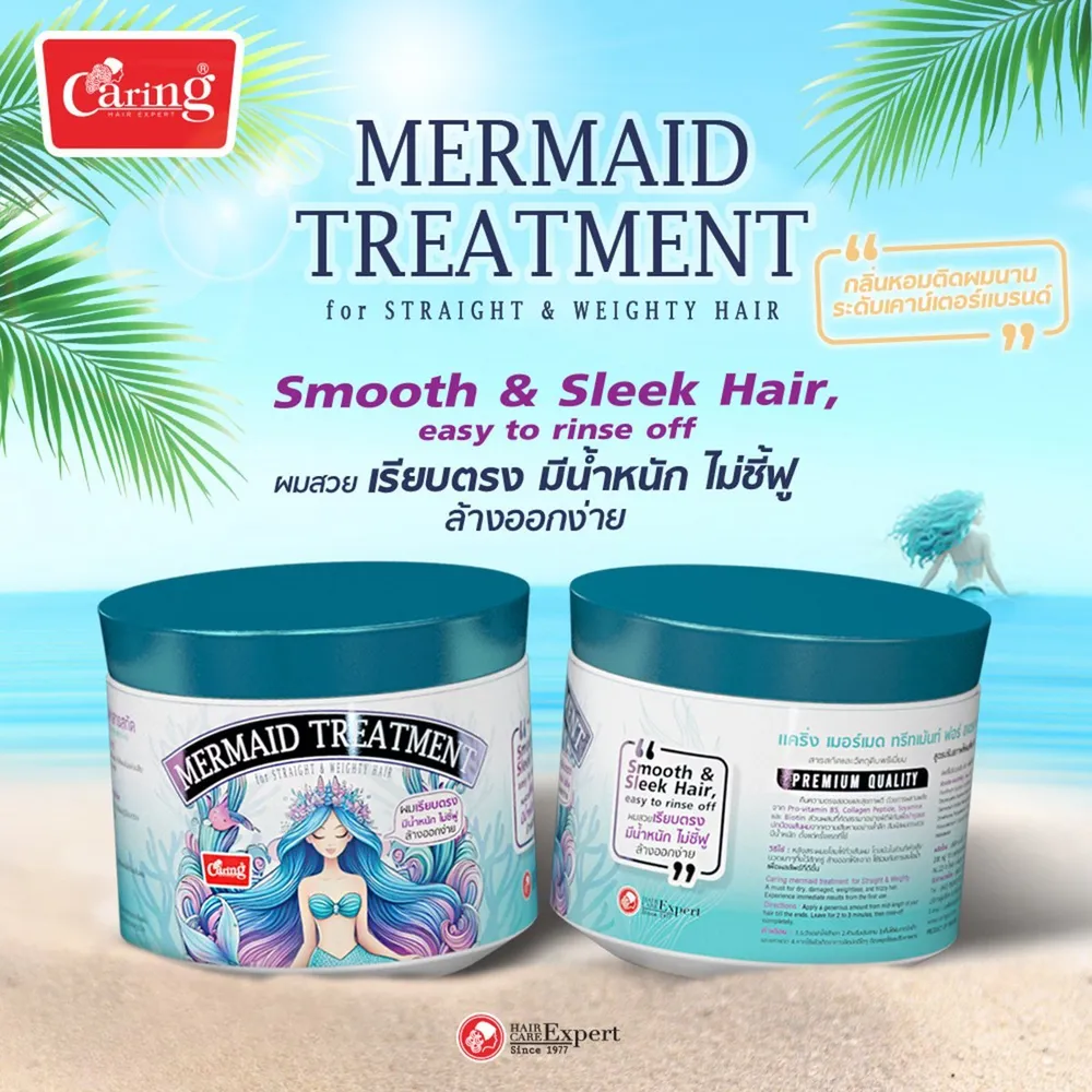- แคริ่ง เมอร์เมด ทรีทเม้นท์ ฟอร์ สเตรท แอนด์ เวทที แฮร์ สูตรปรับสภาพให้ผมเรียบตรง มีน้ำหนัก ไม่พองฟู<br />
