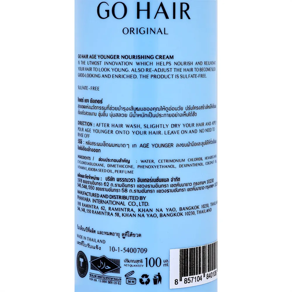 <strong>วิธีใช้:</strong> หลังสระผมเช็ดผมหมาด ๆ เท Age Younger ลงบนฝ่ามือและลูบไล้ให้ทั่วเส้นผมโดยไม่ต้องล้างออก<br />