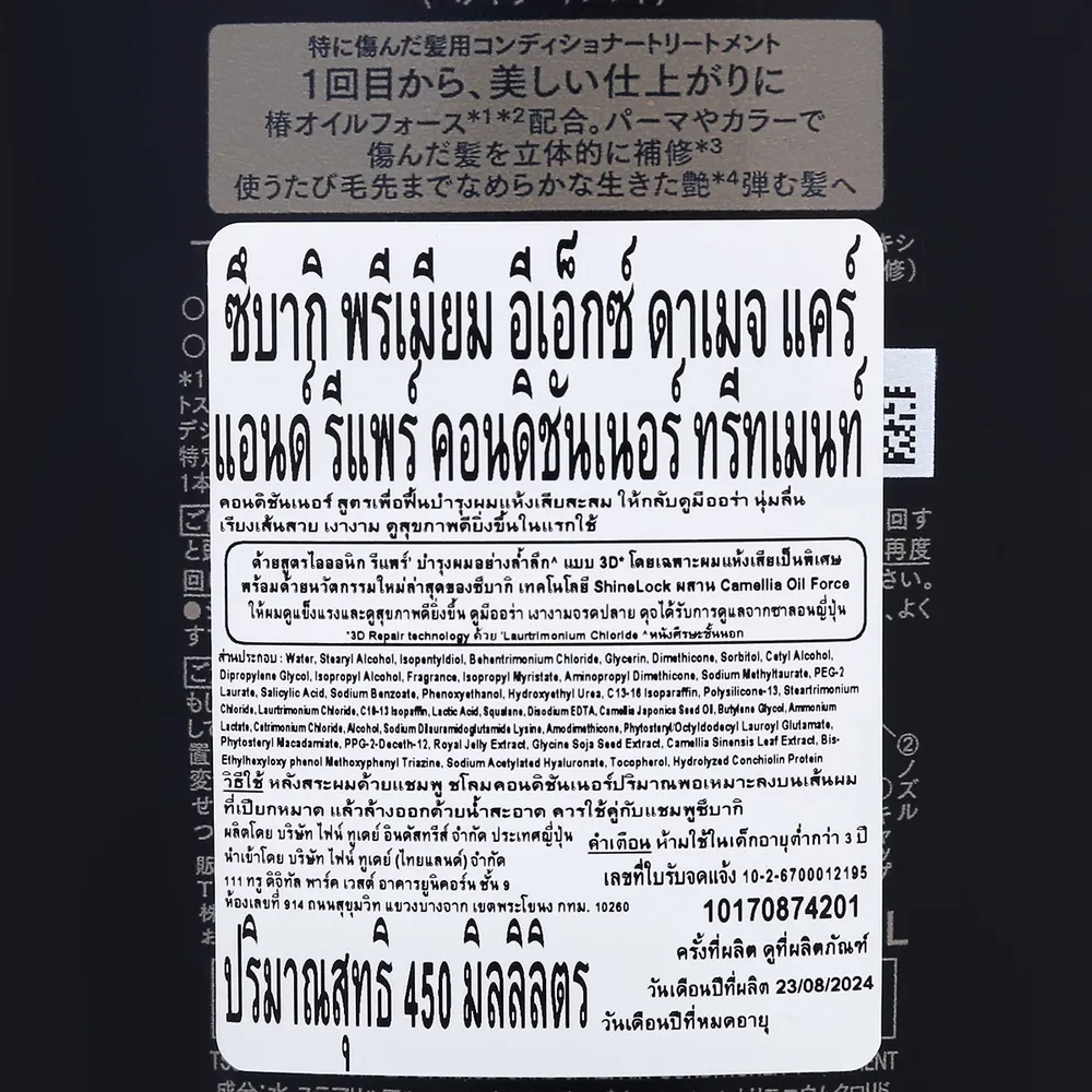 ซึบากิ พรีเมียม อีเอ็กซ์ ดาเมจ แคร์ แอนด์ รีแพร์ คอนดิชันเนอร์ ทรีทเมนท์ 450 มล.