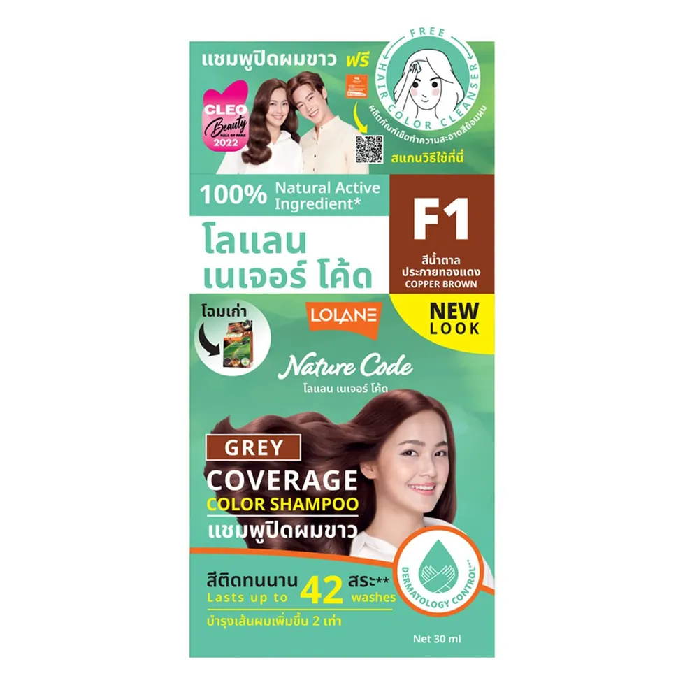 โลแลน เนเจอร์ โค้ด แชมพูปิดผมขาว สี F1 น้ำตาลประกายทองแดง 30 มล.