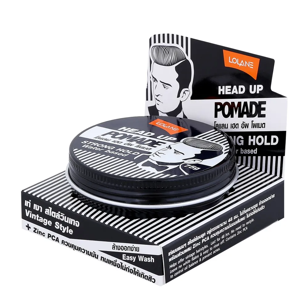 โลแลน ผลิตภัณฑ์จัดแต่งทรงผม เฮด อัพ โพเมด เหมาะสำหรับผมรองทรง เงาเป็นธรรมชาติ ยกโคนผม เพิ่มวอลลุ่ม จัดทรงผมอยู่ทรงนานตลอดวัน เนื้อเจลแว๊กซ์ จัดแต่งทรงสไตล์วินเทจ<br />